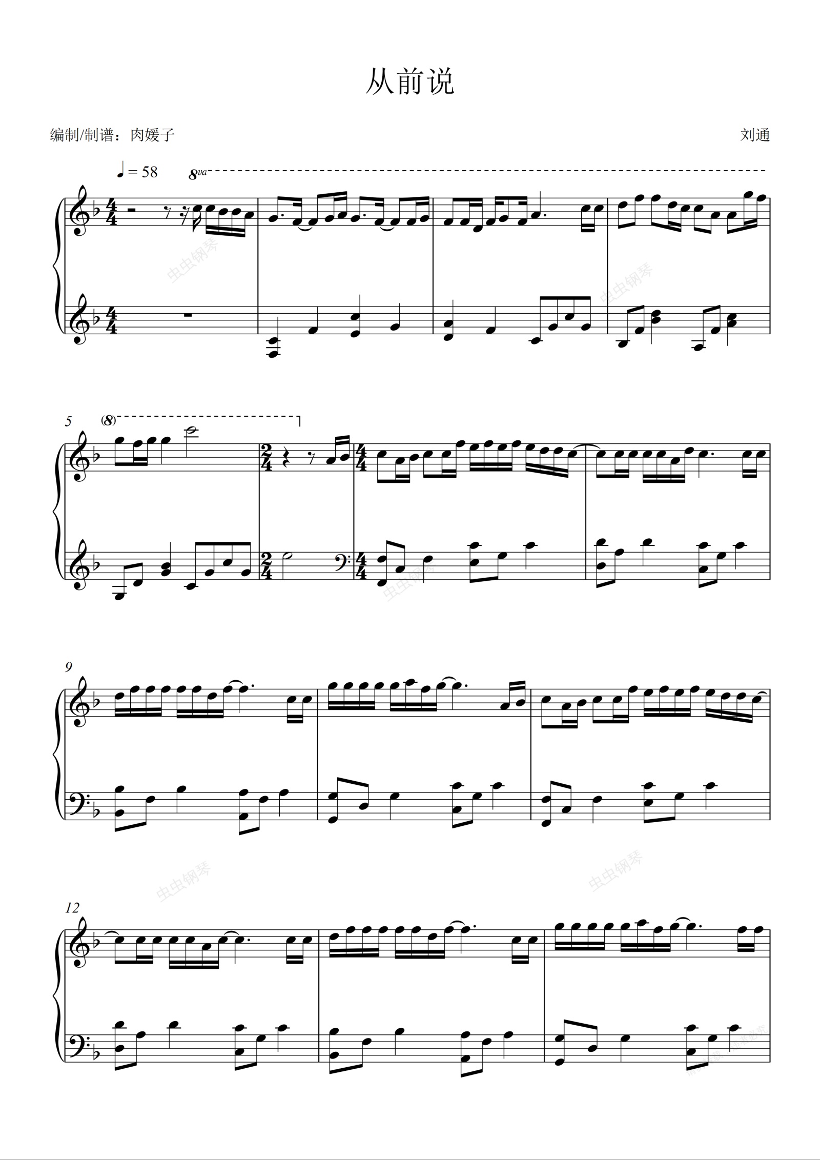 钢琴谱:从前说-简单版-从前对妈妈说谎翻山越岭只为能与你拥抱一场