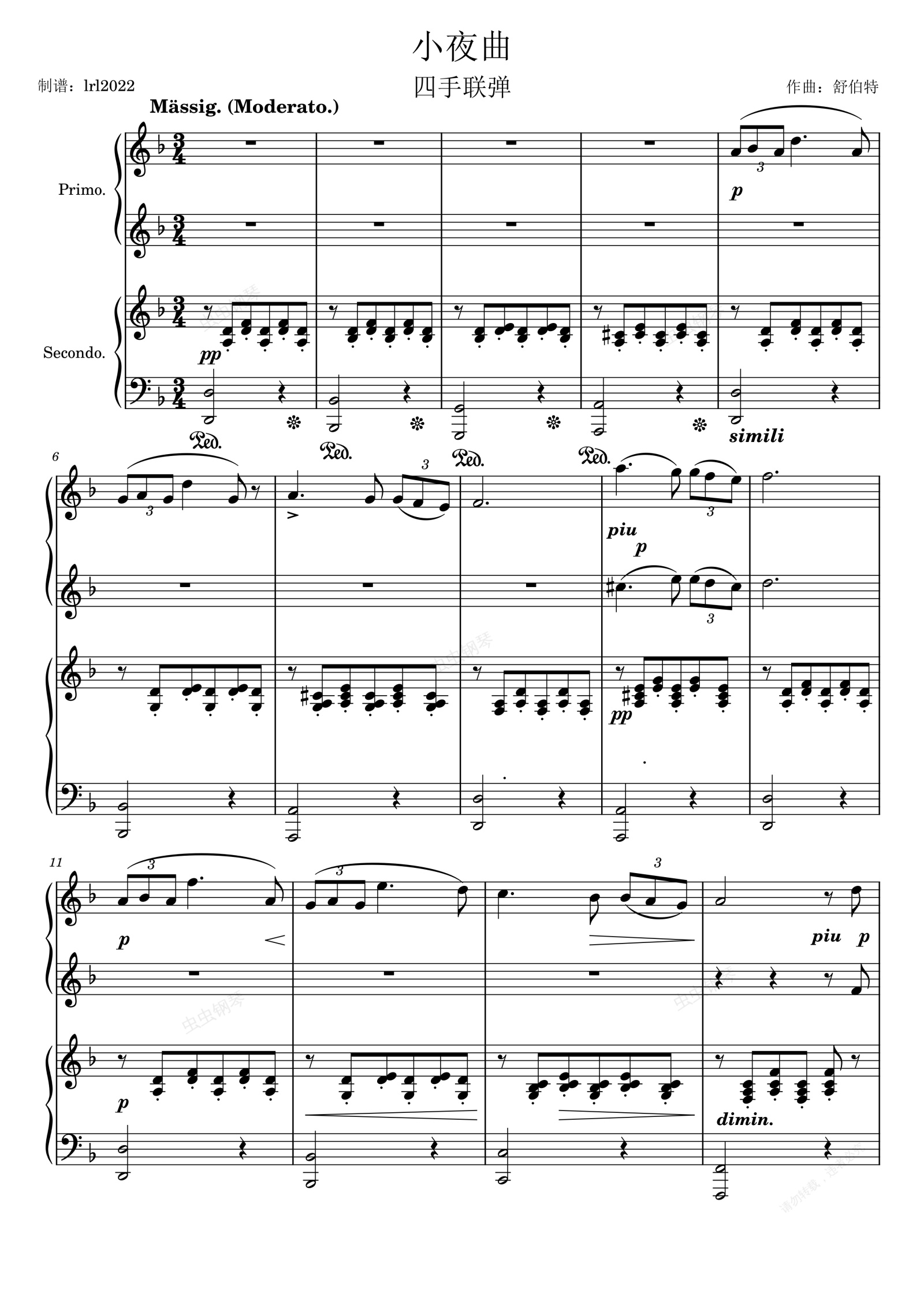 钢琴谱:舒伯特-小夜曲-四手联弹-钢琴谱-Schubert-Op.90-No.11