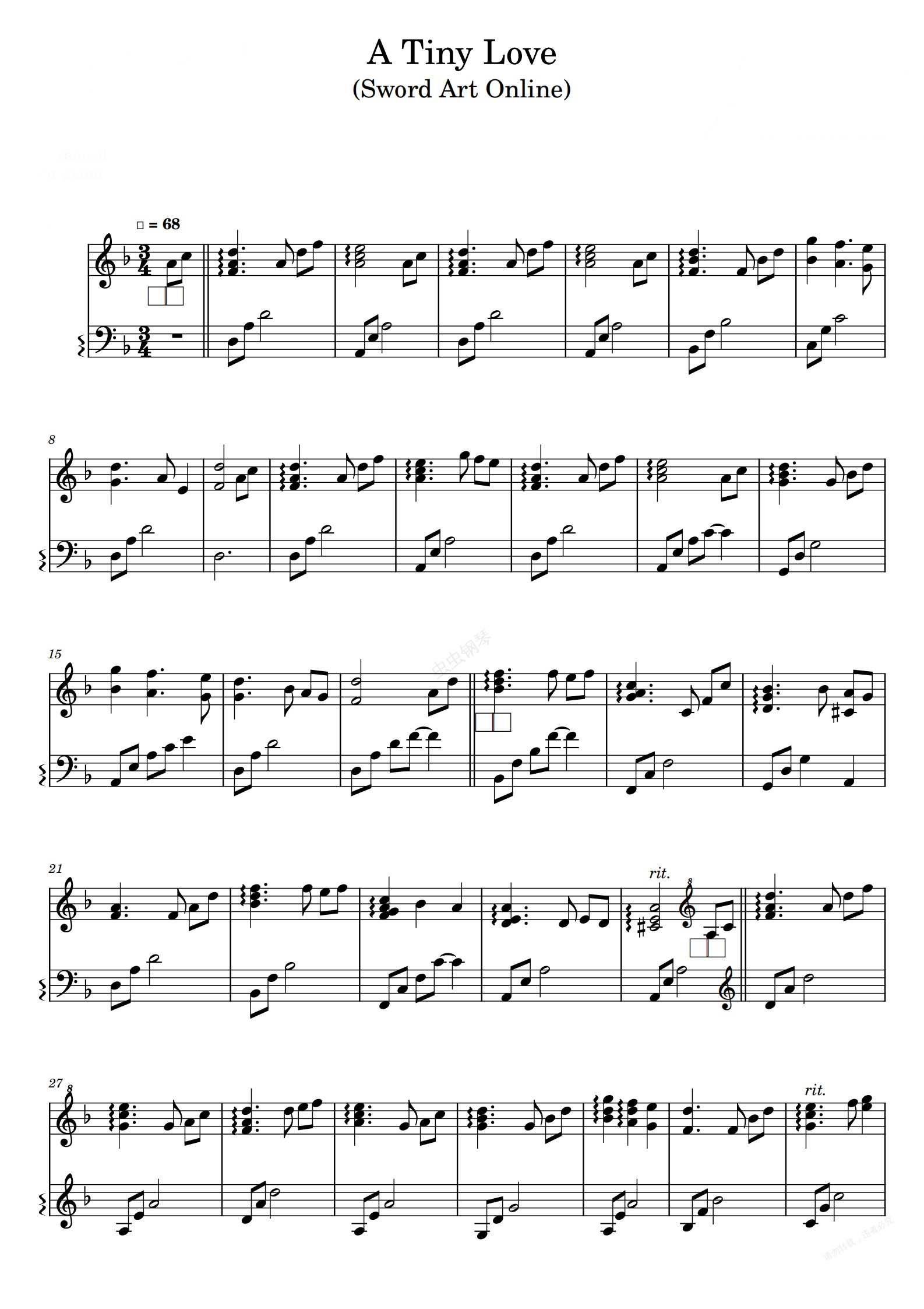 钢琴谱:刀剑神域原声A Tiny Love