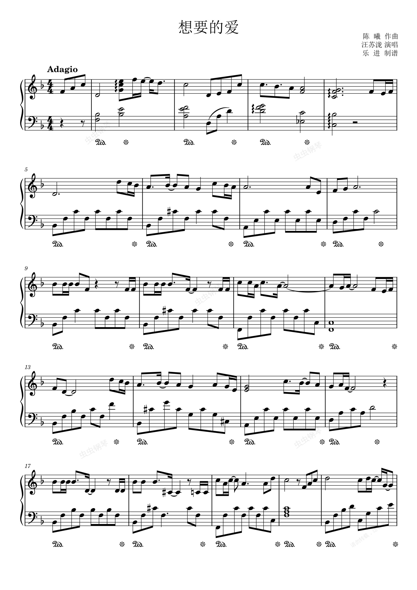 钢琴谱:汪苏泷《想要的爱》 原调浪漫版 电视剧《盛装》爱情主题曲