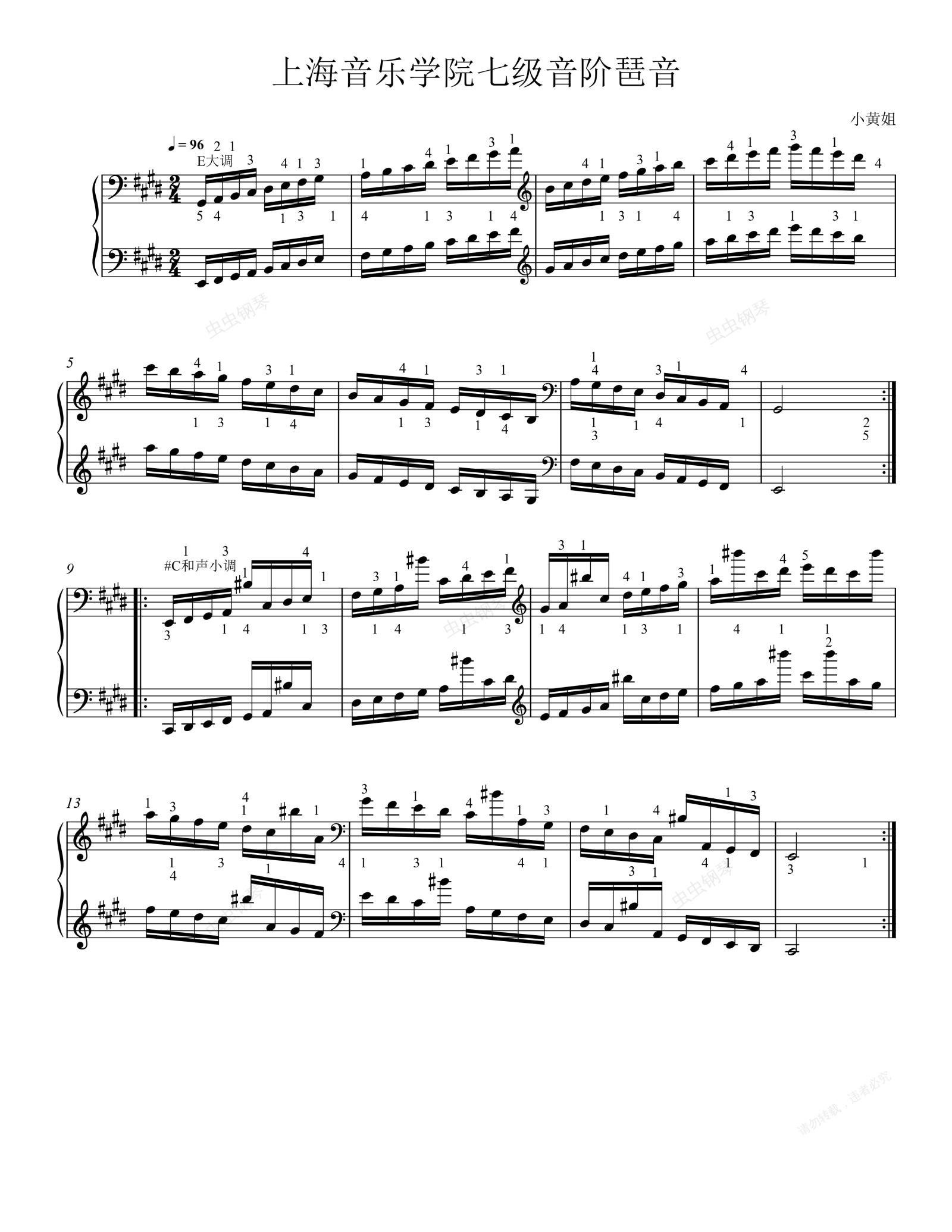 钢琴谱:上海音乐学院七级音阶