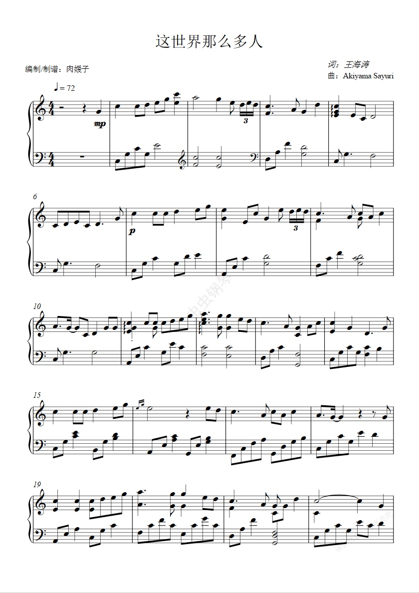 钢琴谱:这世界那么多人 -【极限还原 完美改编演奏版】