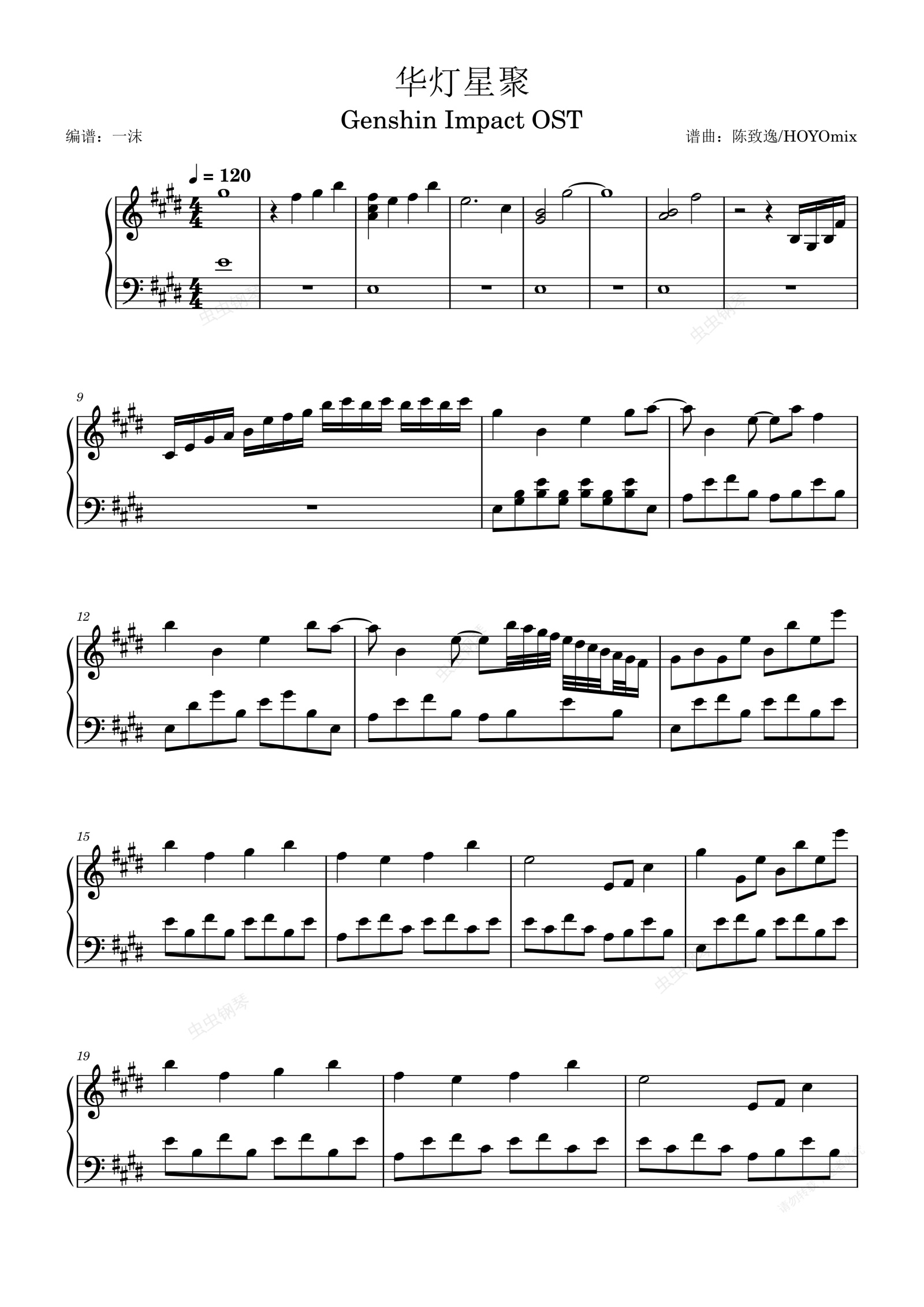 钢琴谱:原神-华灯星聚 钢琴独奏
