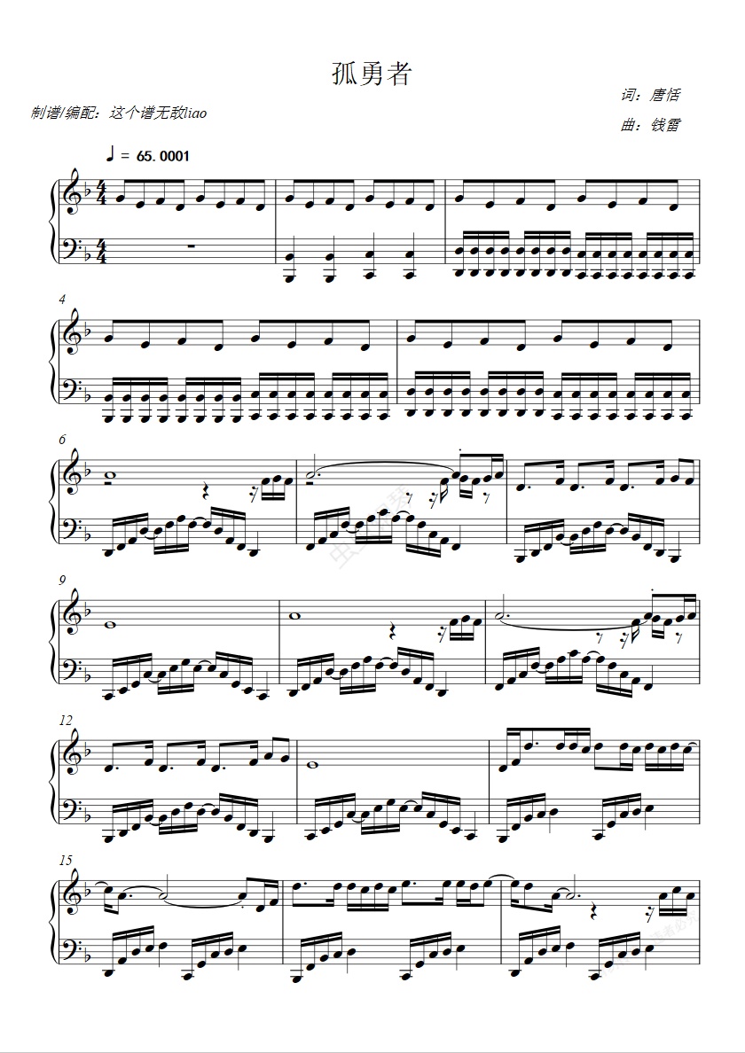 钢琴谱:100%高能---孤勇者 (《英雄联盟:双城之战》动画剧集中文主题曲)