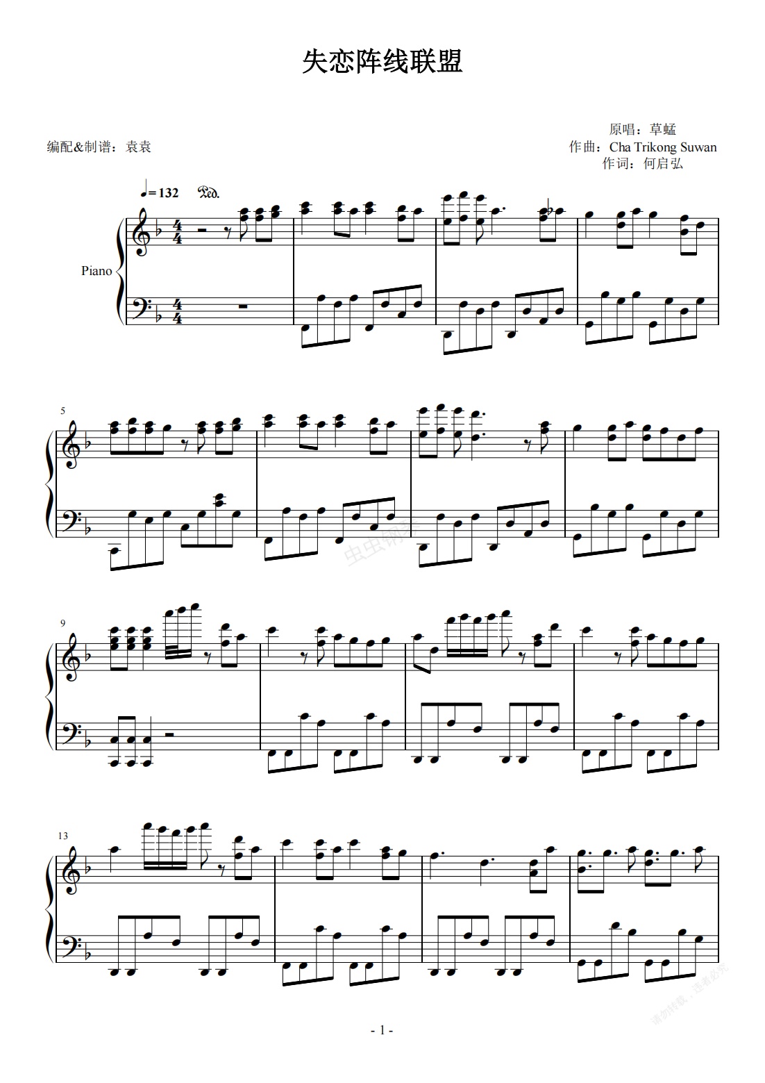 钢琴谱:失恋阵线联盟 家有仙妻主题曲 原调 完美演奏版