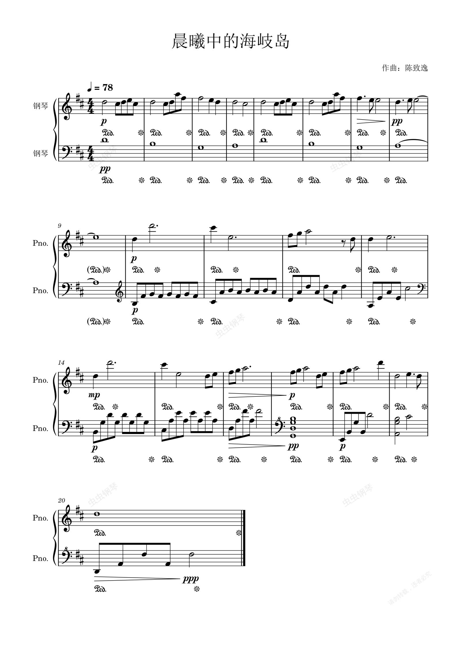 钢琴谱:【原神·稻妻】晨曦中的海岐岛