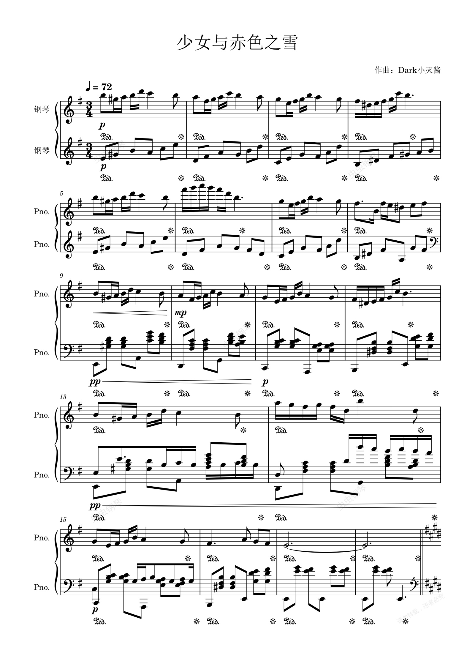 钢琴谱:【原神同人曲】少女与赤色之雪