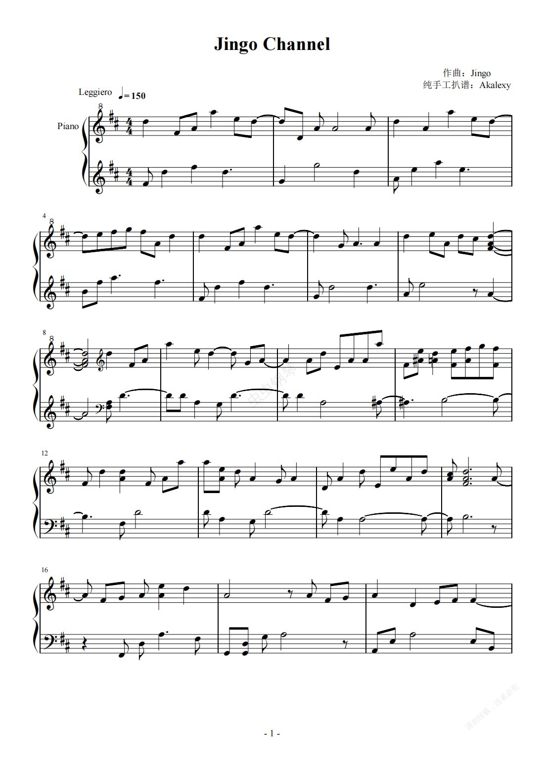 钢琴谱:VRchat《Jingo Channel》