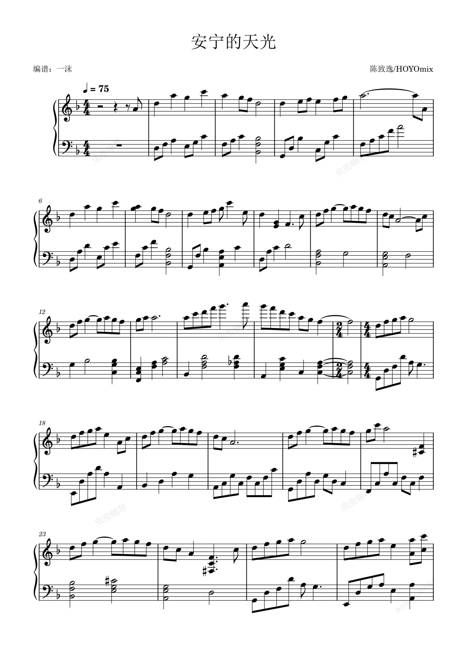 钢琴谱:原神 绀田村BGM 安宁的天光 钢琴独奏
