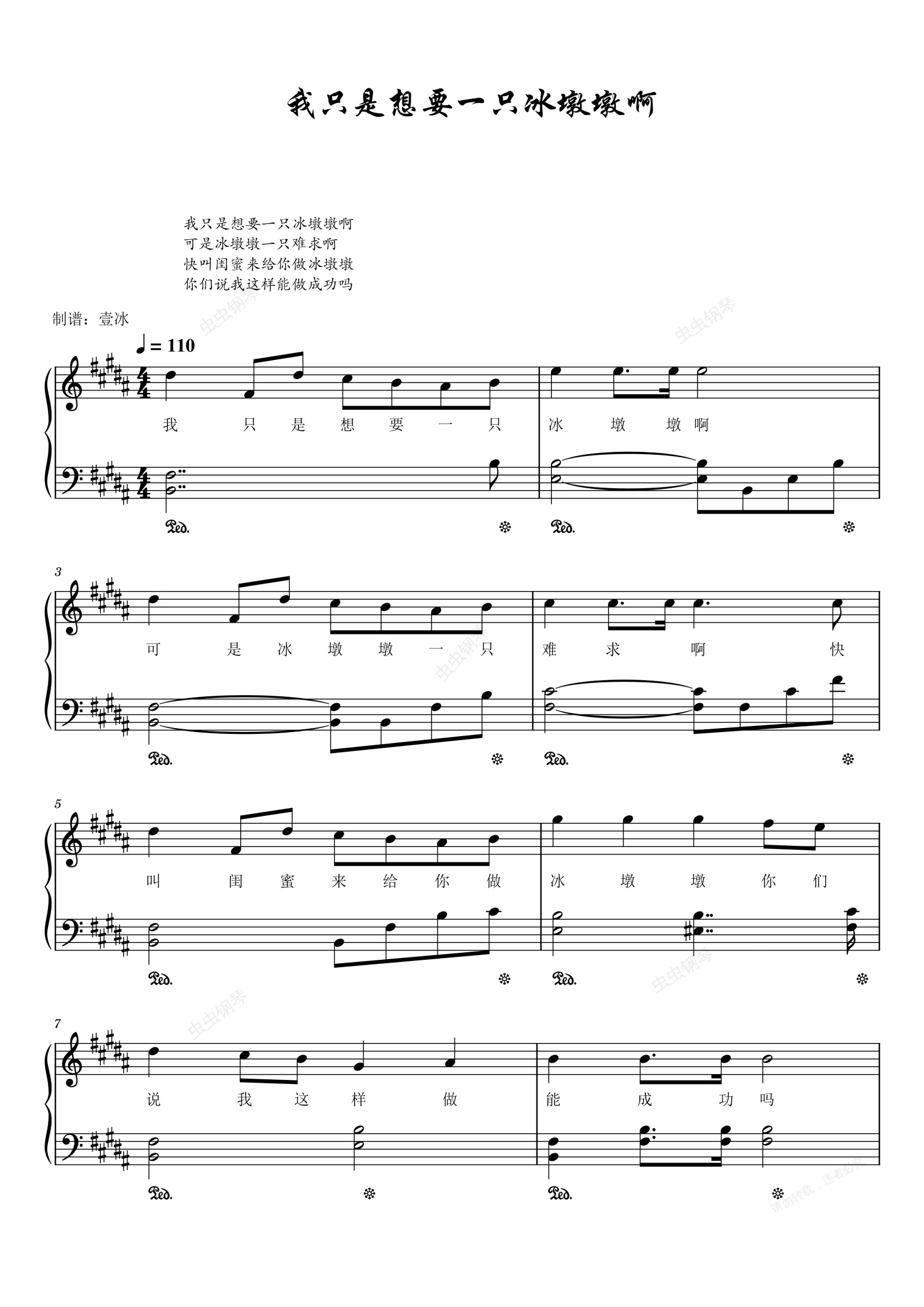 钢琴谱:我只是想要一只冰墩墩啊-原调版