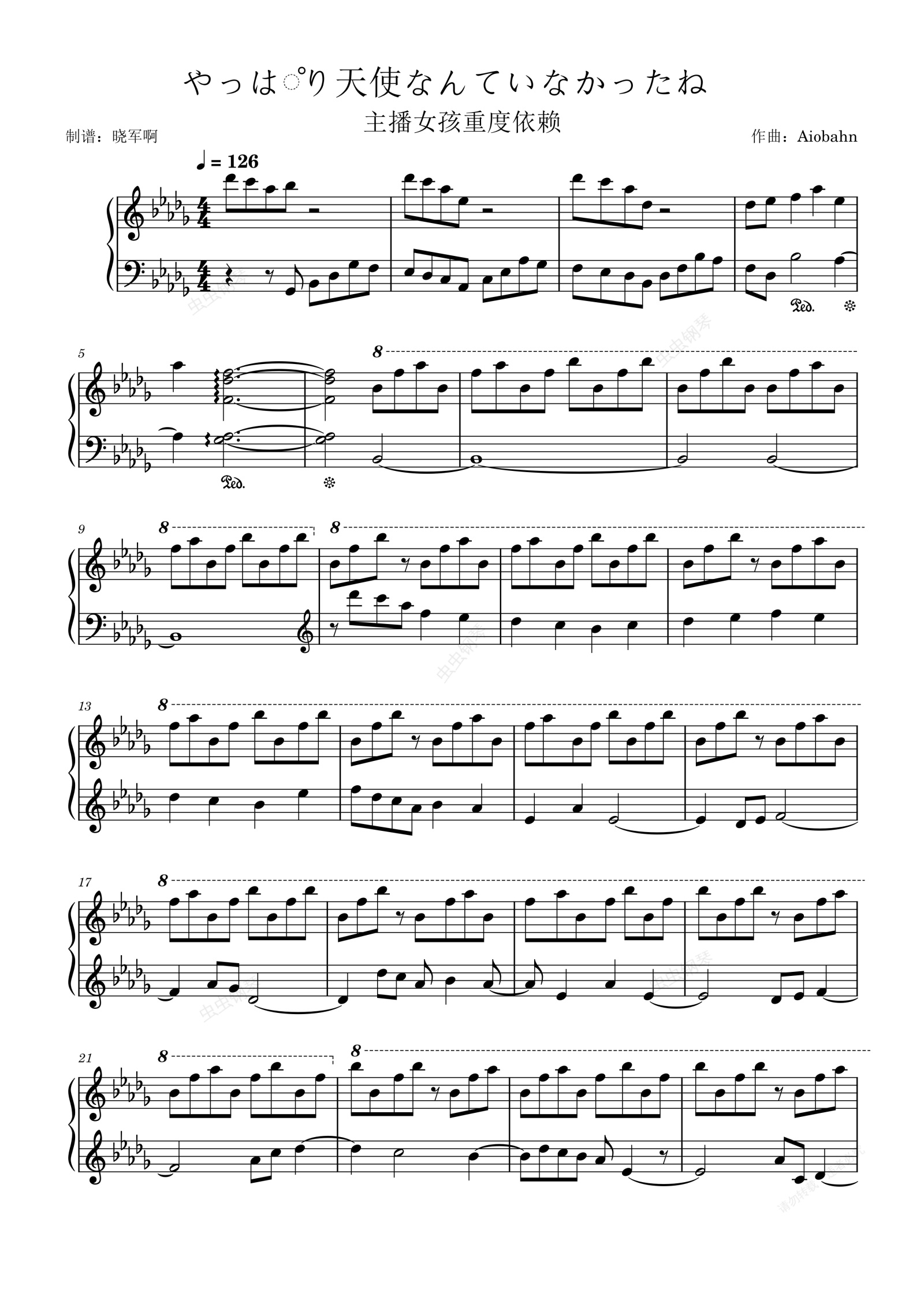 钢琴谱:【主播女孩重度依赖】やっぱり天使なんていなかったね