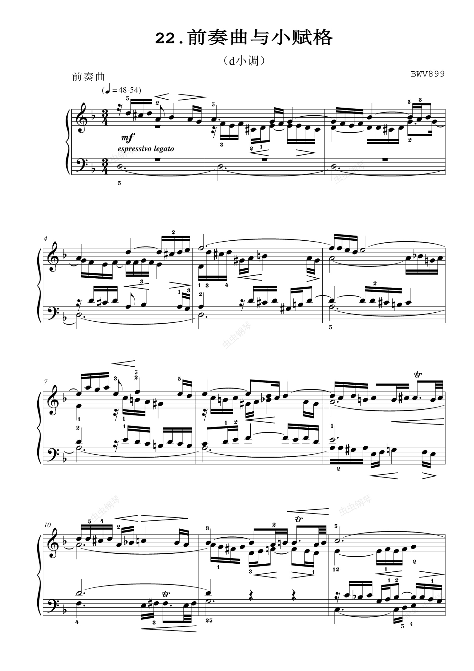 钢琴谱:小前奏曲No.22《巴赫 小前奏曲与赋格曲》