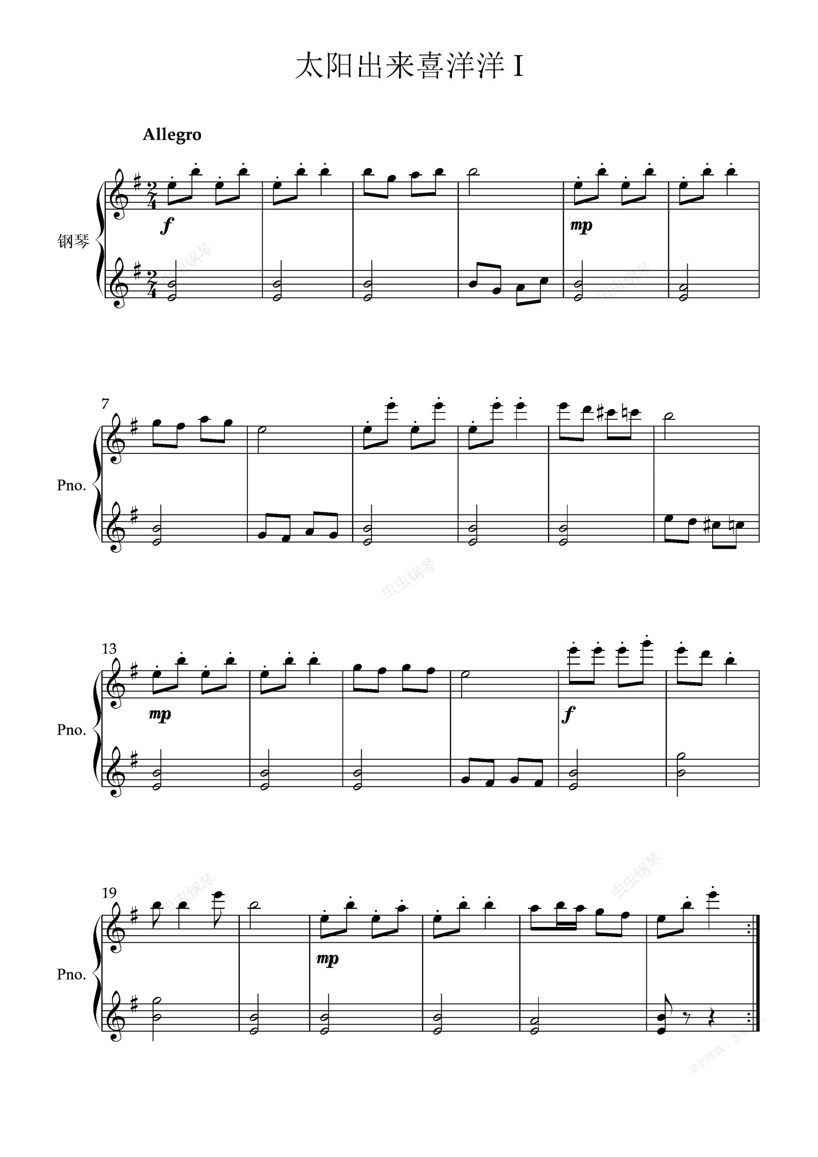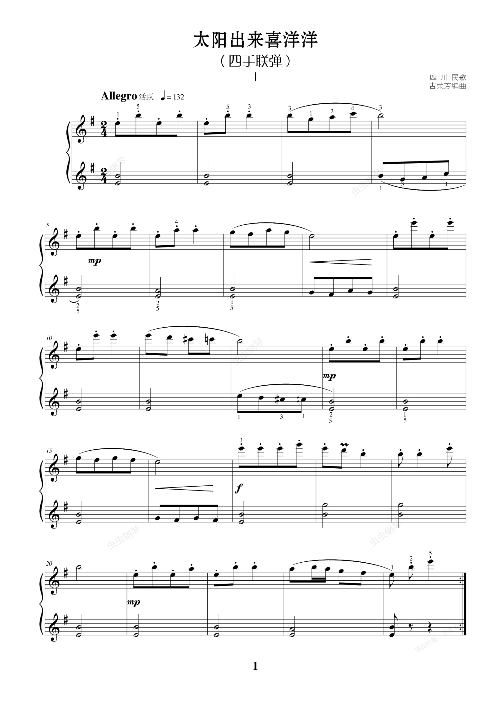 钢琴谱:119. 太阳出来喜洋洋I(四手联弹)