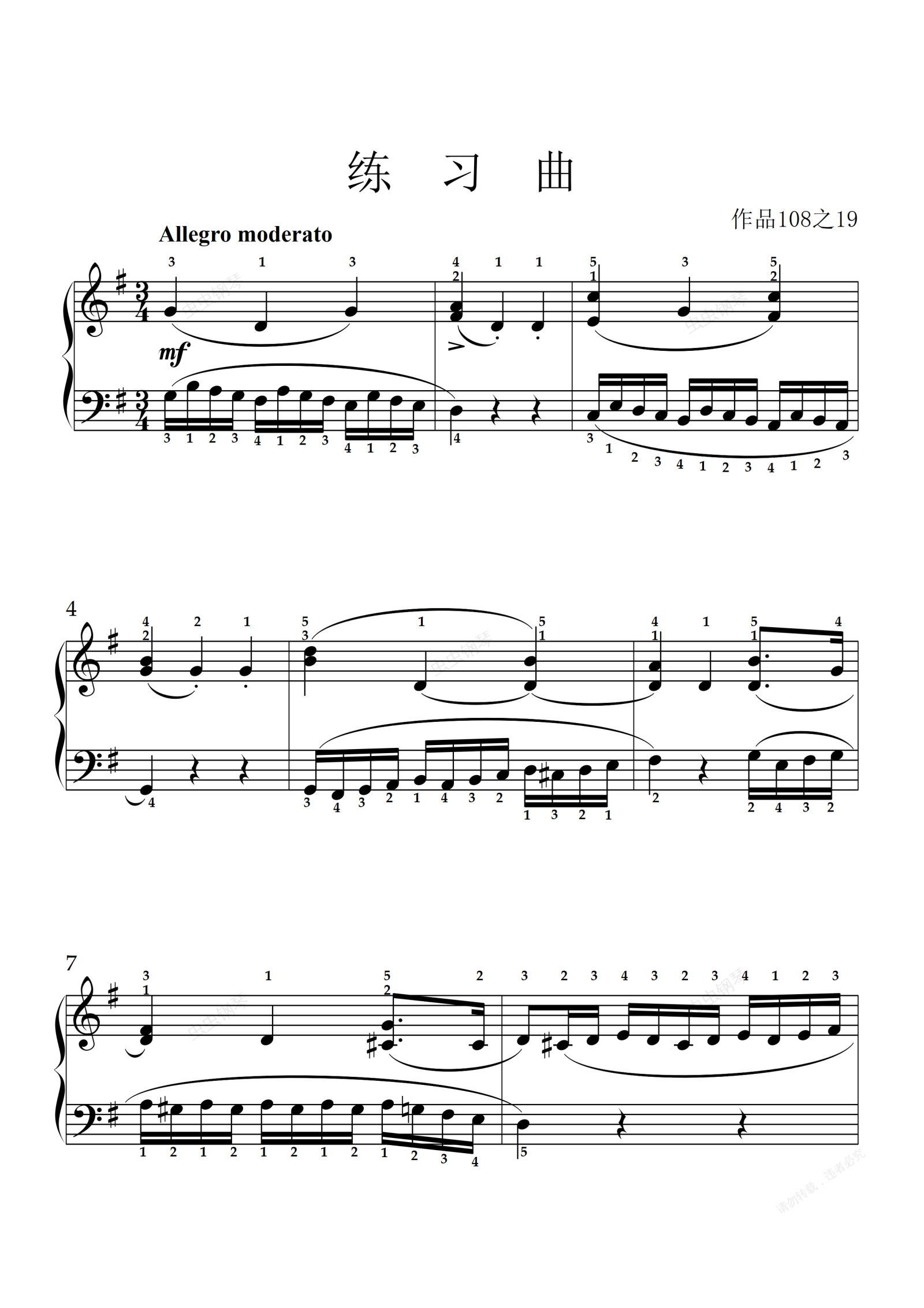 钢琴谱:104. 练习曲(作品108之19)