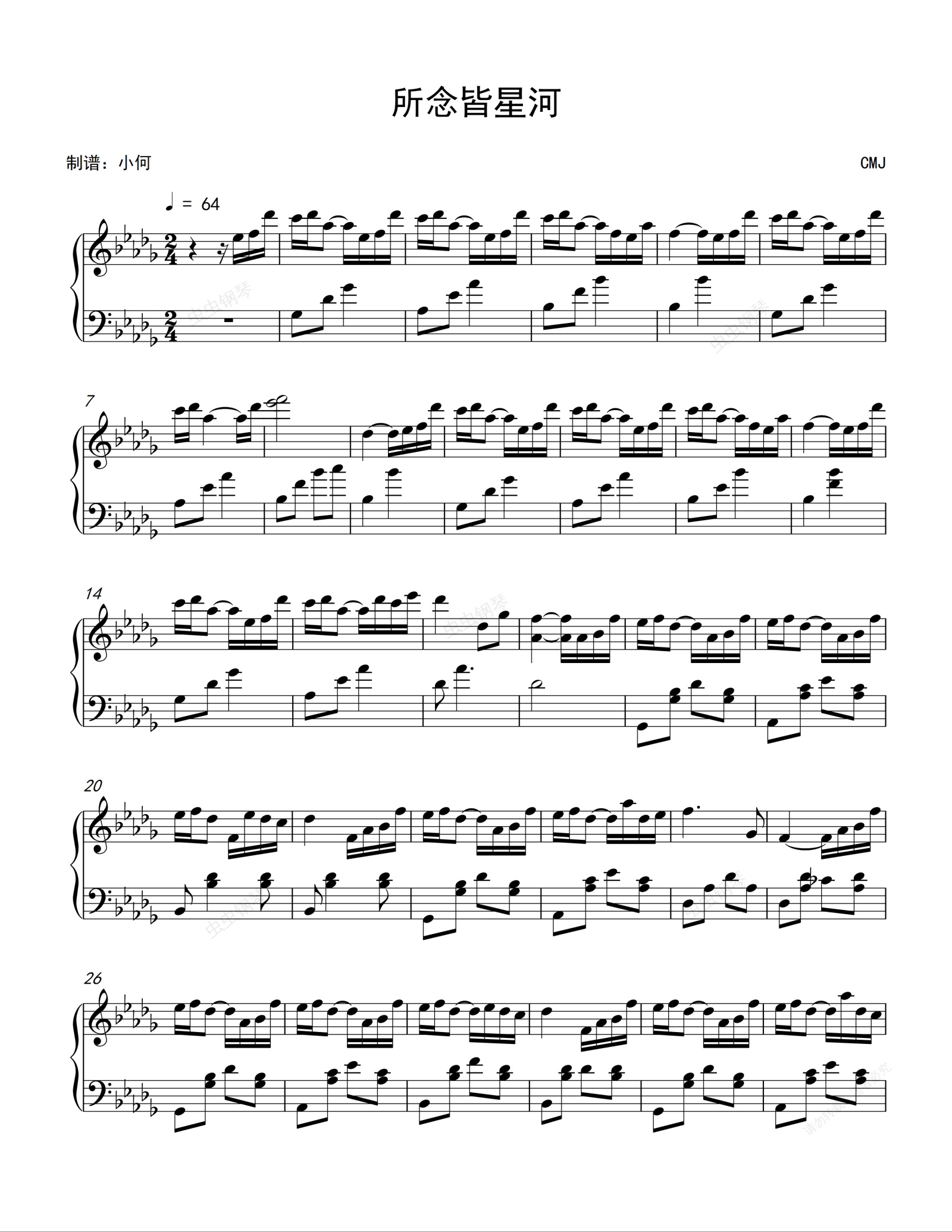 钢琴谱:所念皆星河-简单-房东的猫儿