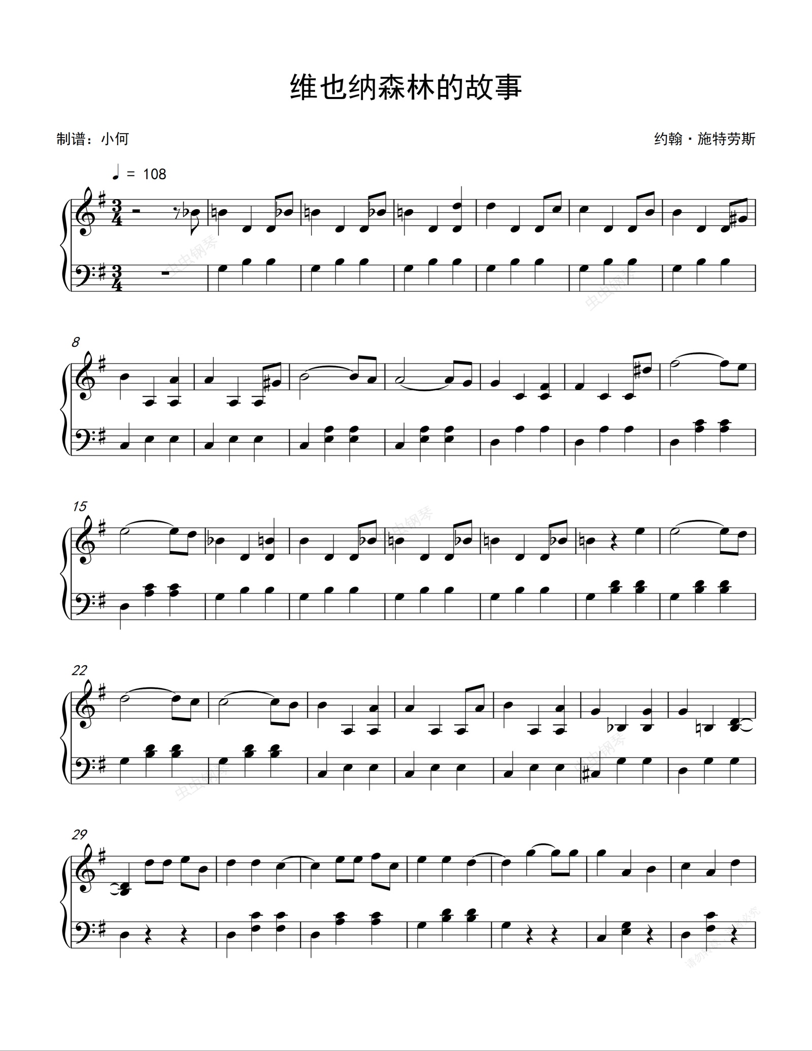 钢琴谱:维也纳森林的故事-约翰·施特劳斯作曲