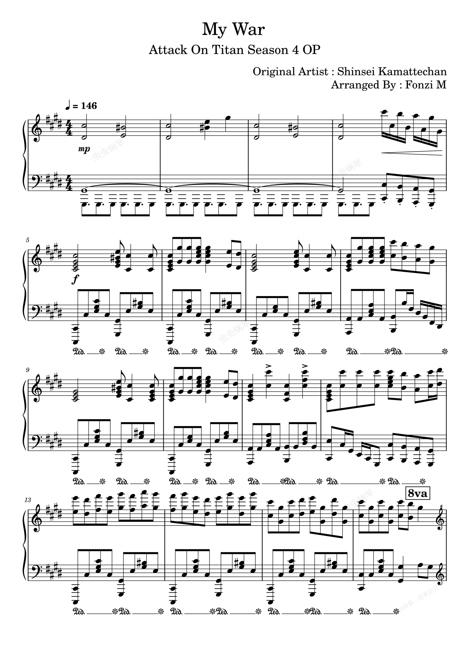 钢琴谱:Fonzi M-僕の戦争 -进击的巨人