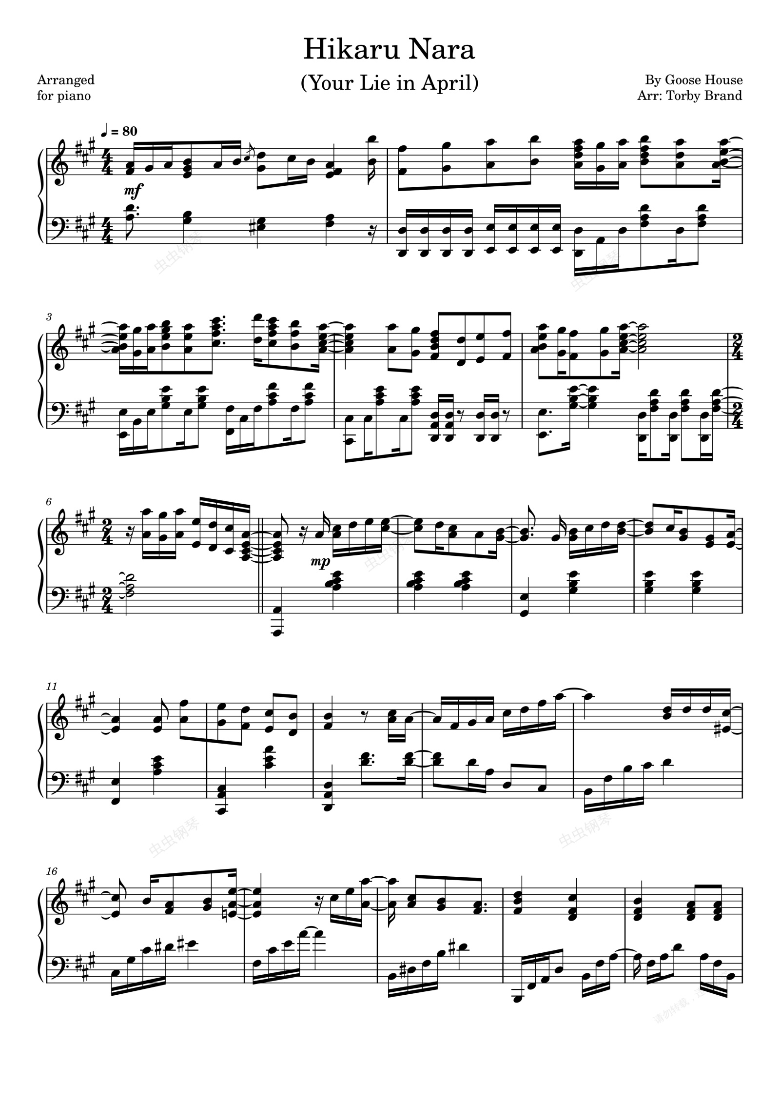 钢琴谱:光るなら (四月是你的谎言)