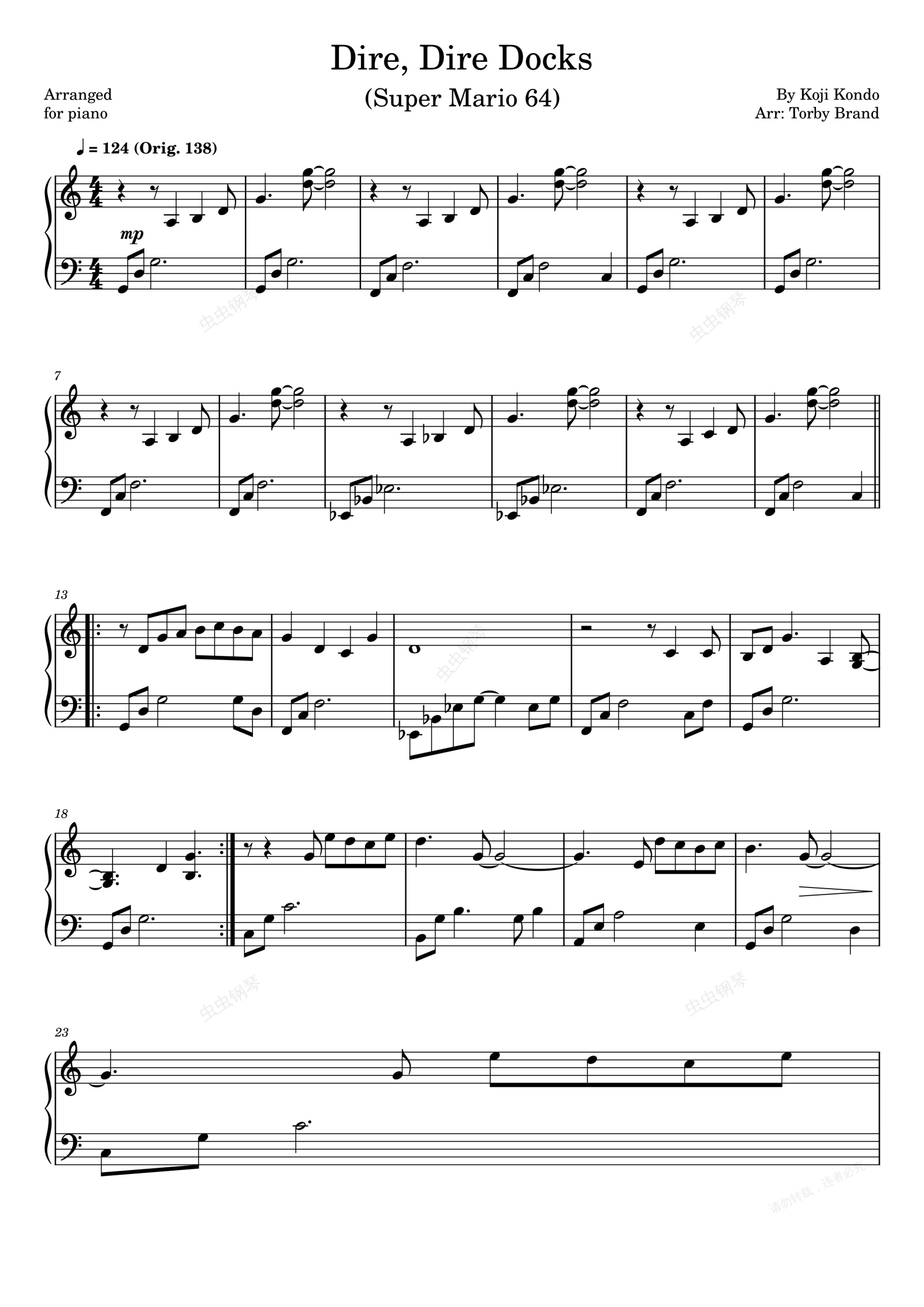 钢琴谱:Dire Dire Docks ウォーターランド (超级马里奥64)