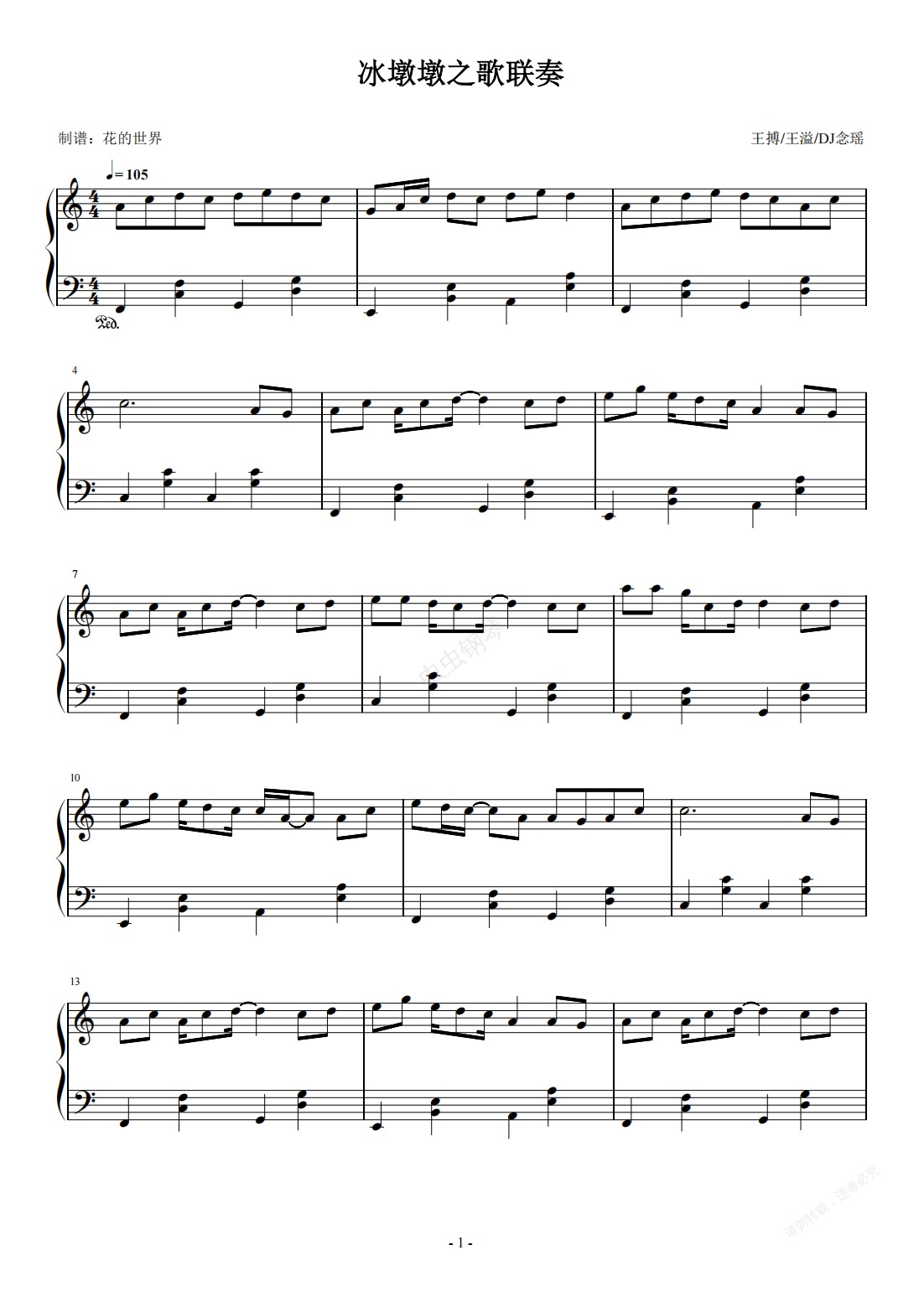 钢琴谱:冰墩墩之歌联奏 C调简易版