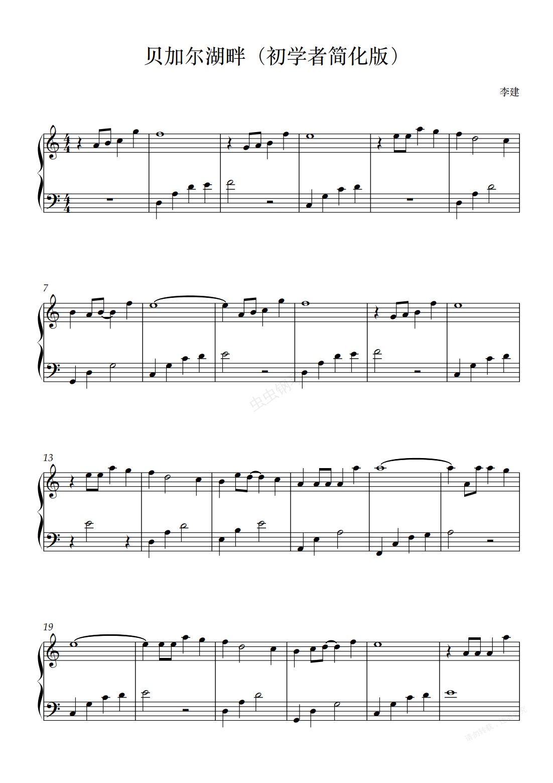 钢琴谱:贝加尔湖畔(初学者简化版)