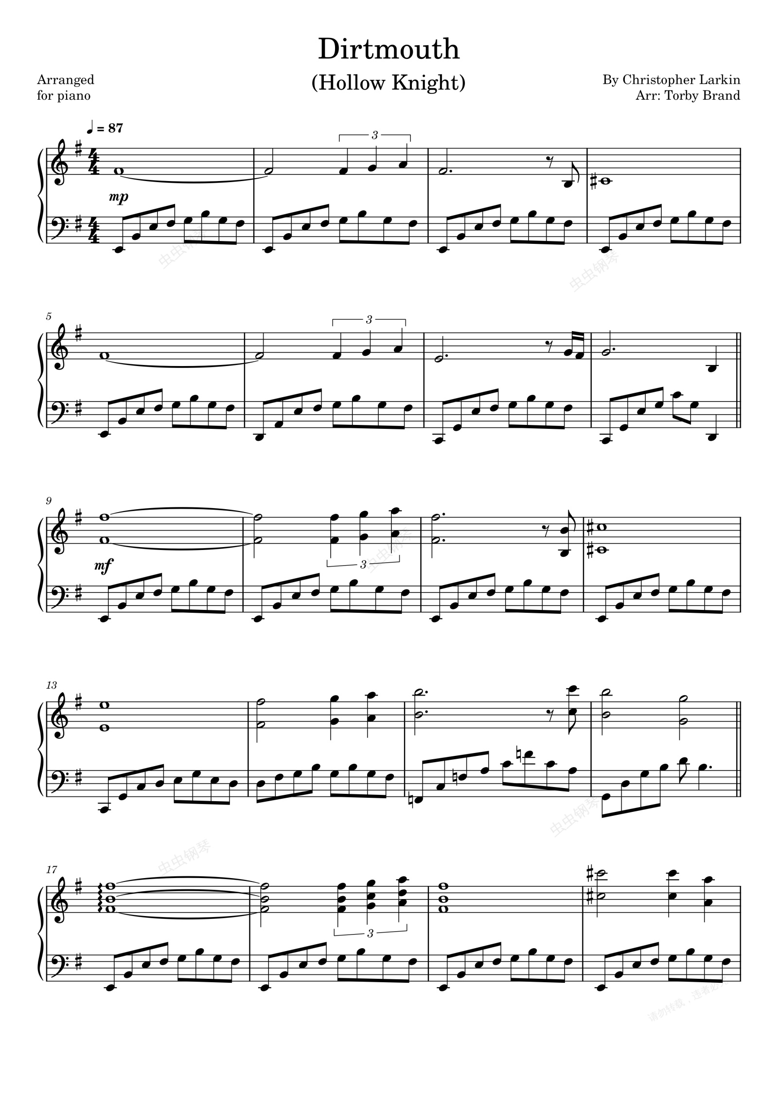 钢琴谱:Dirtmouth (空洞骑士)