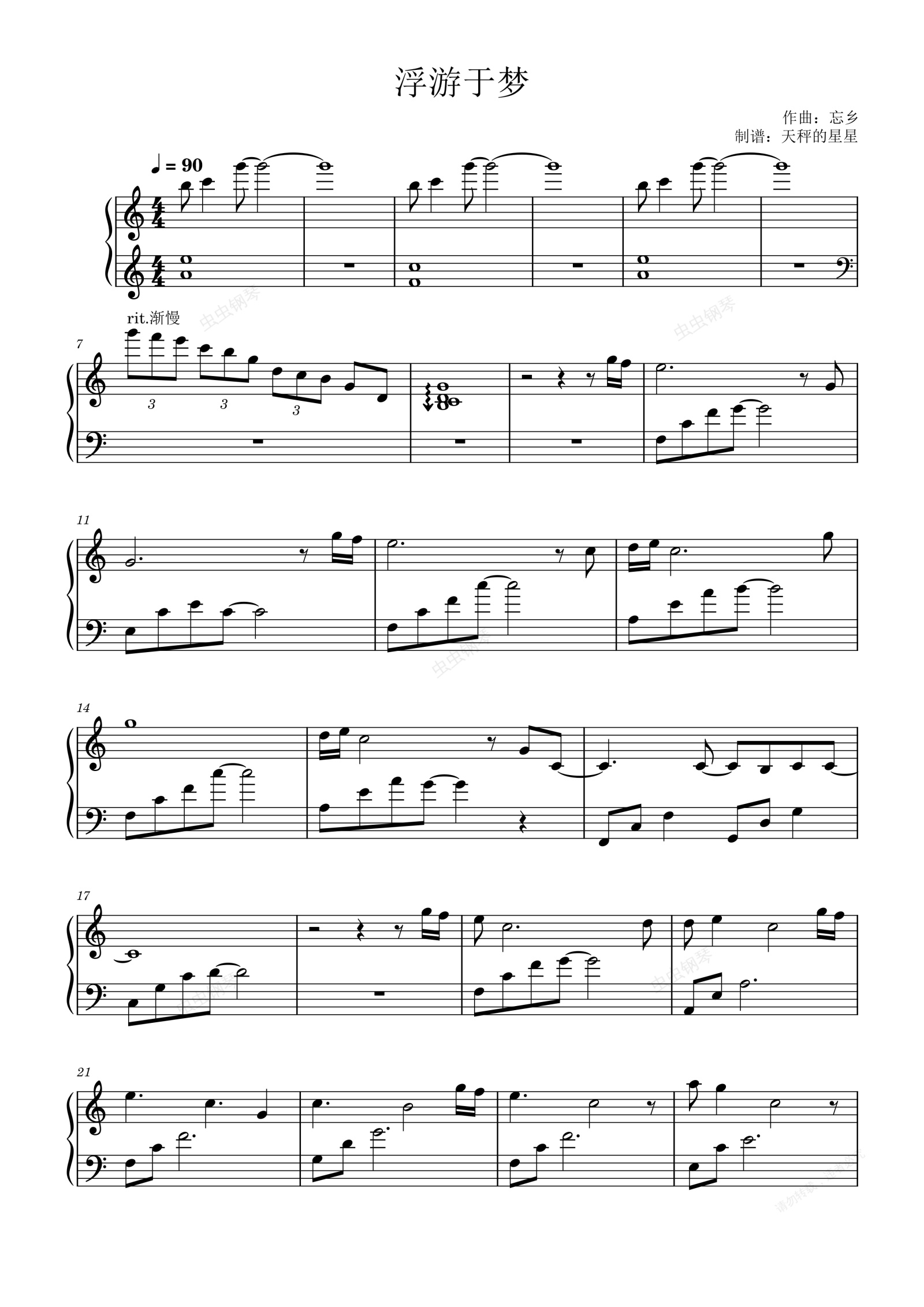 钢琴谱:浮游于梦-忘乡