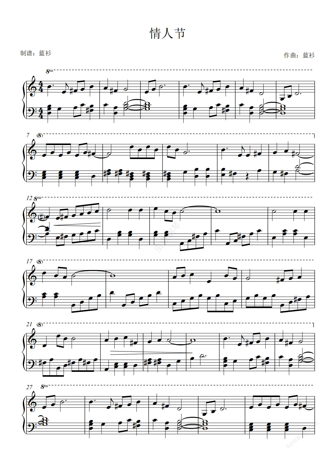 钢琴谱:情人节