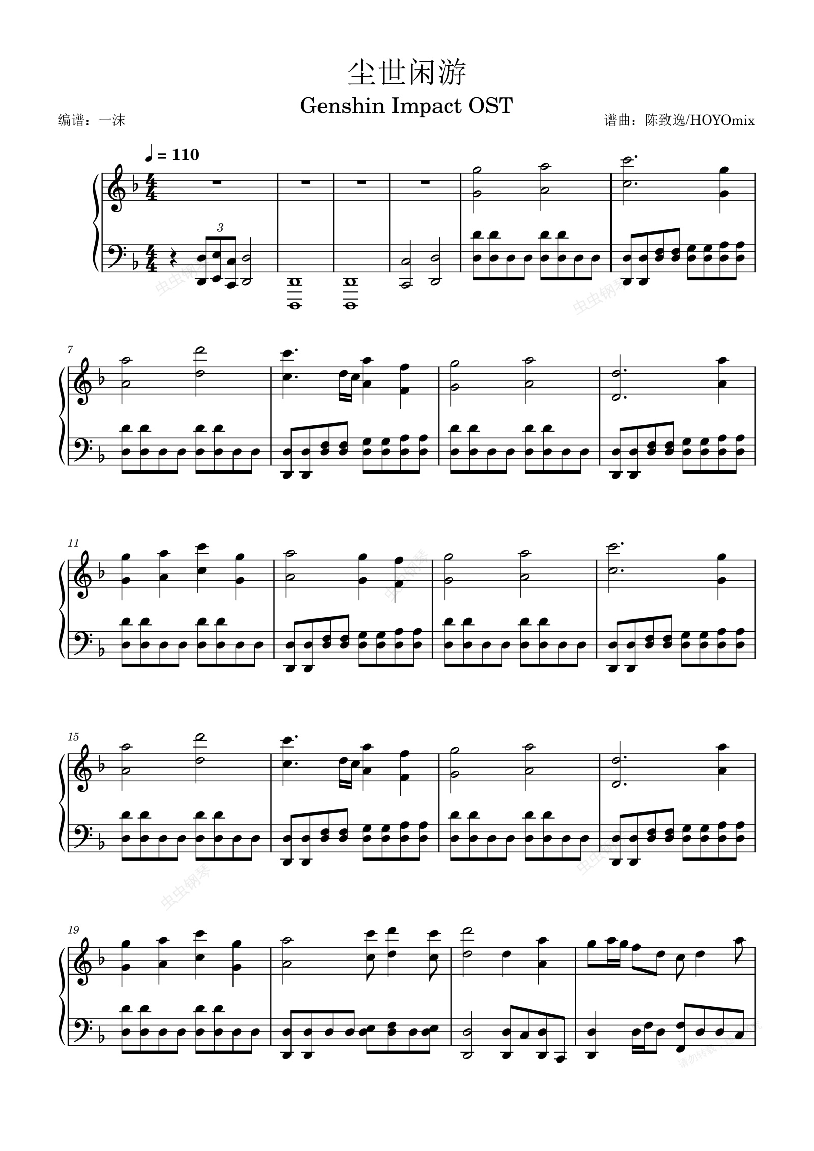 钢琴谱:原神-尘世闲游 高质量 钢琴独奏