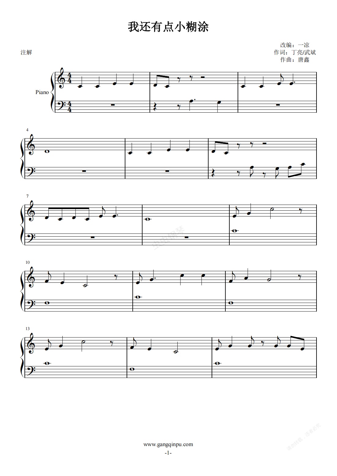 钢琴谱:我还有点小糊涂 启蒙版