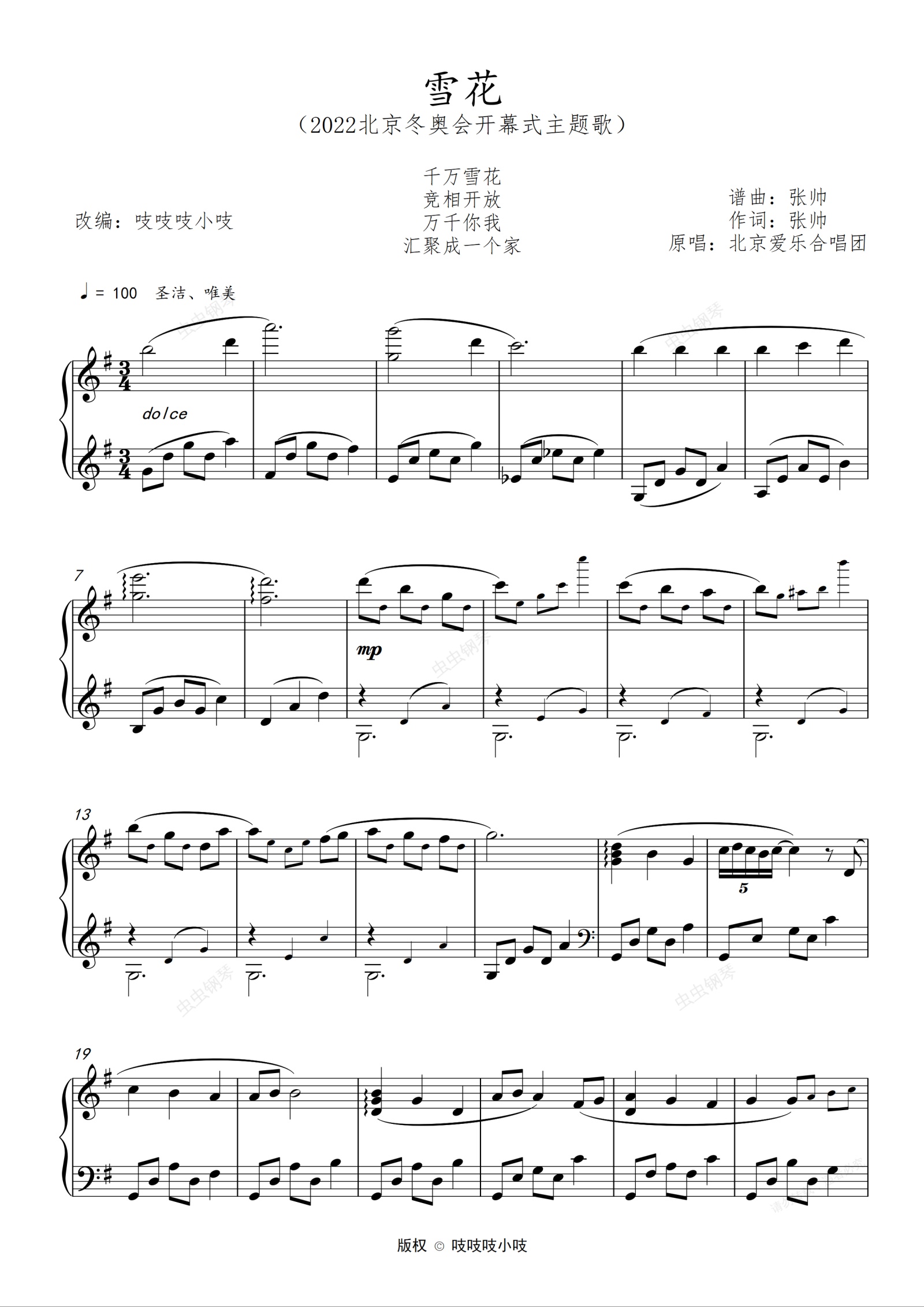 钢琴谱:雪花 唯美改编 2022年北京冬奥会开幕式主题歌