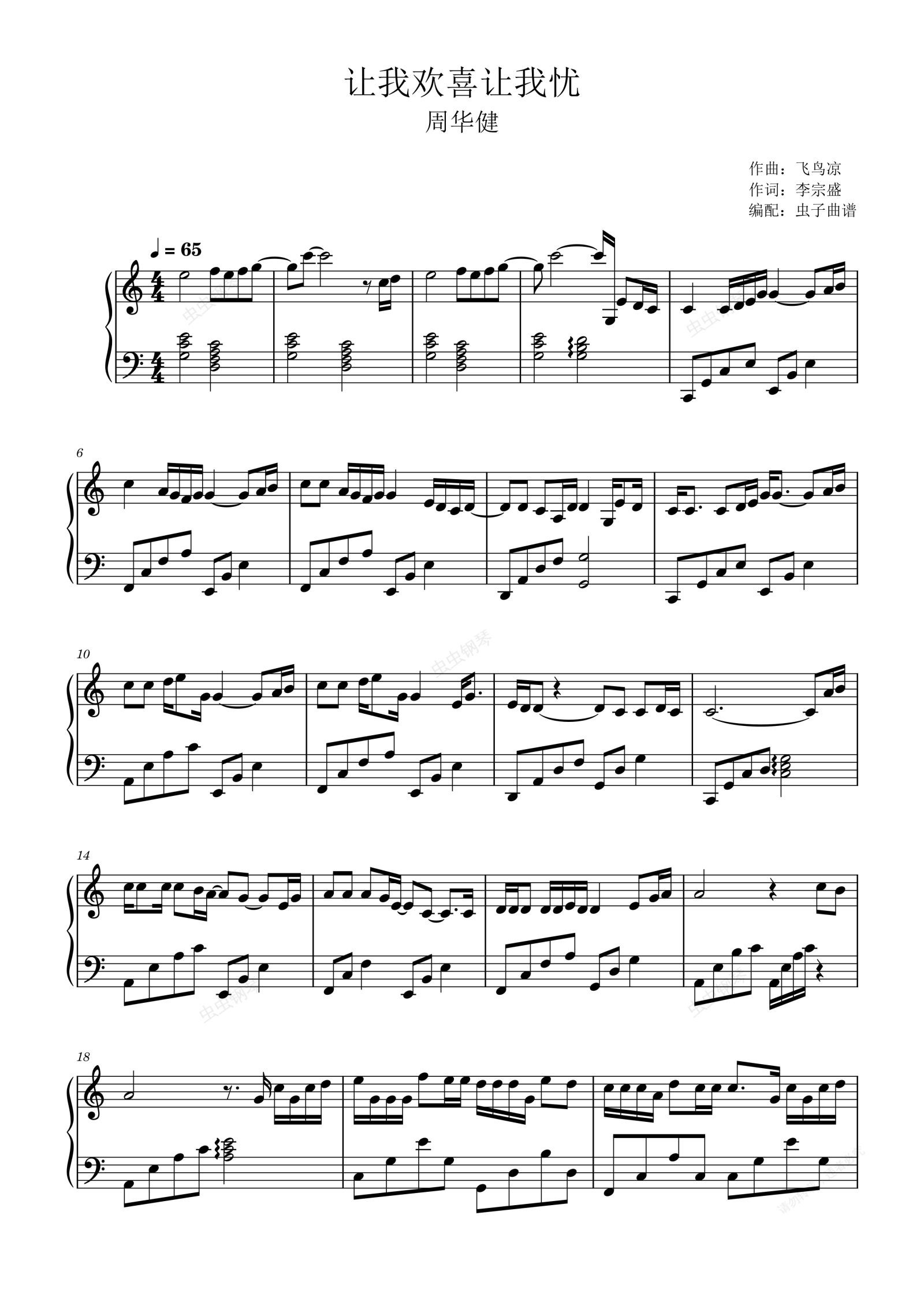 钢琴谱:让我欢喜让我忧(C调简单编配)