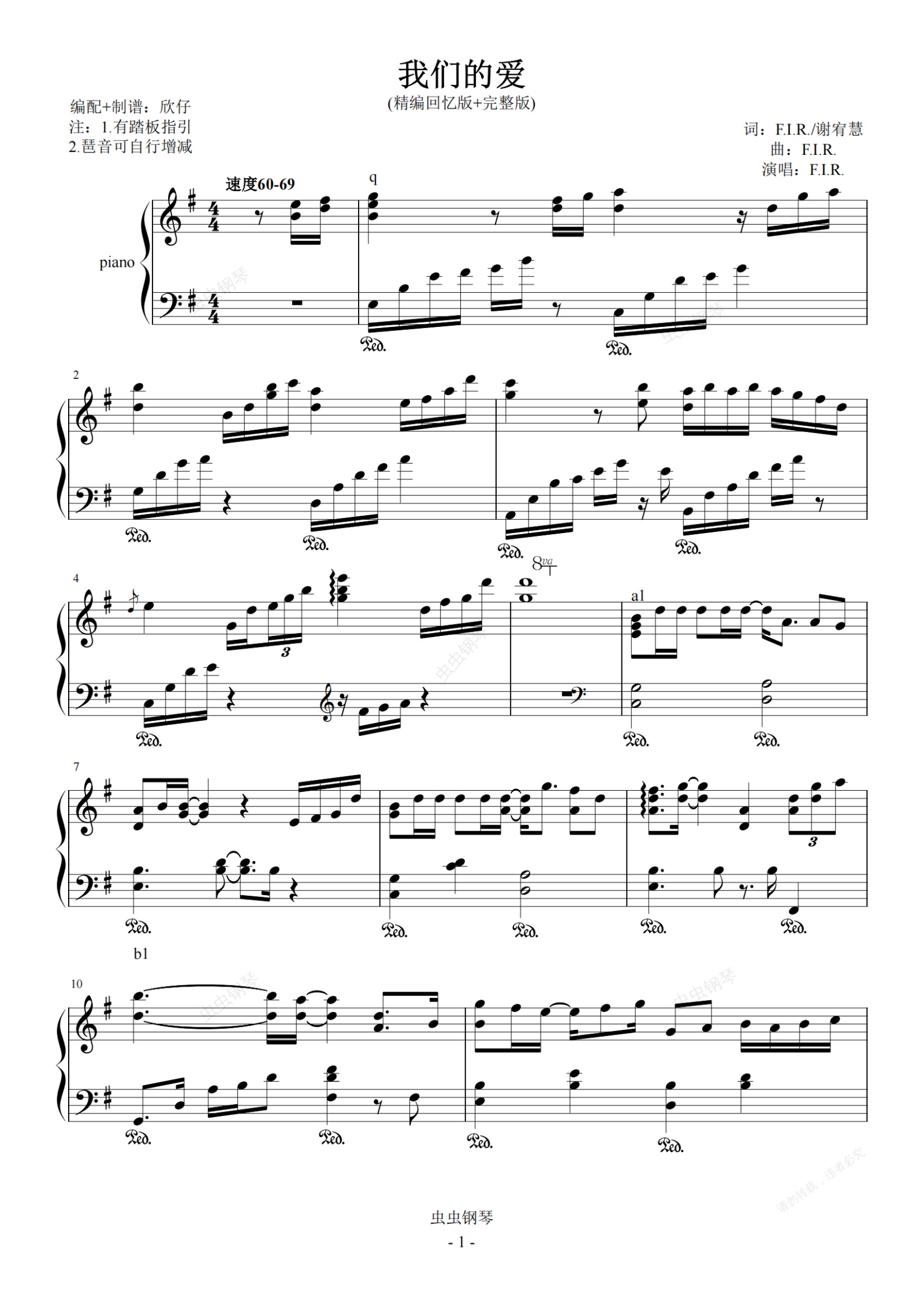 钢琴谱:F.I.R.-G《我们的爱》(精编回忆版+完整版)