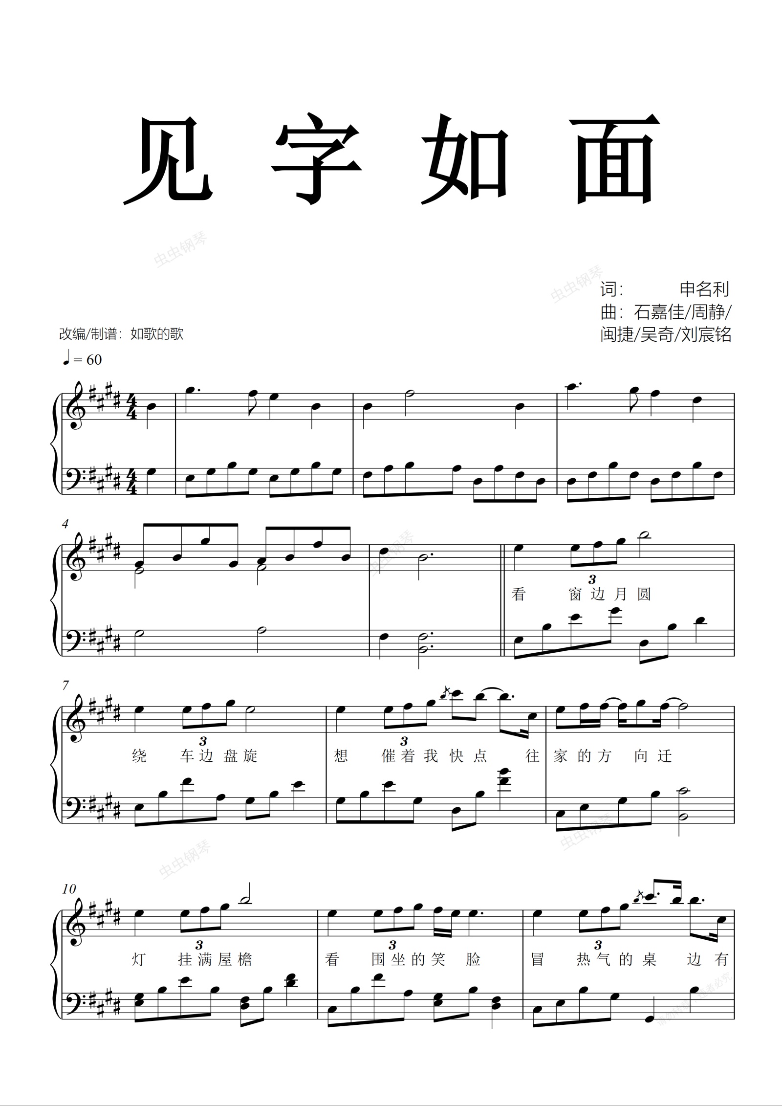 钢琴谱:见字如面-王者荣耀团聚主题曲可弹可唱