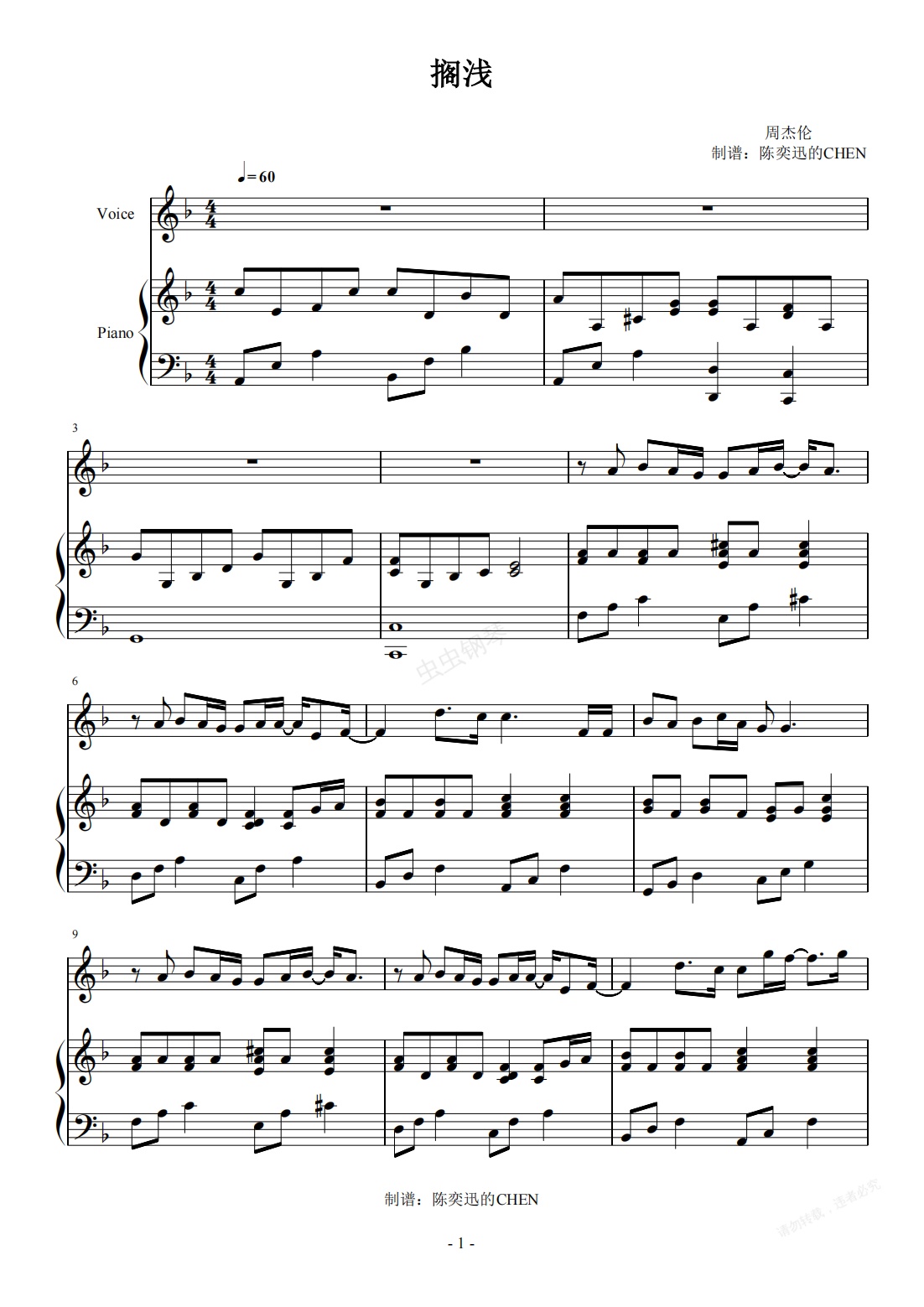钢琴谱:搁浅 F调完美弹唱谱 (有转调)