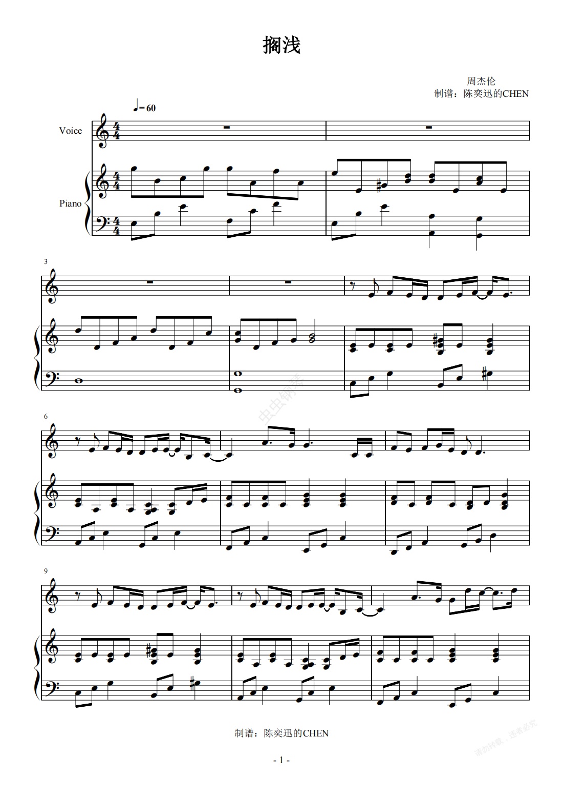 钢琴谱:搁浅 C调完美弹唱谱(转调)