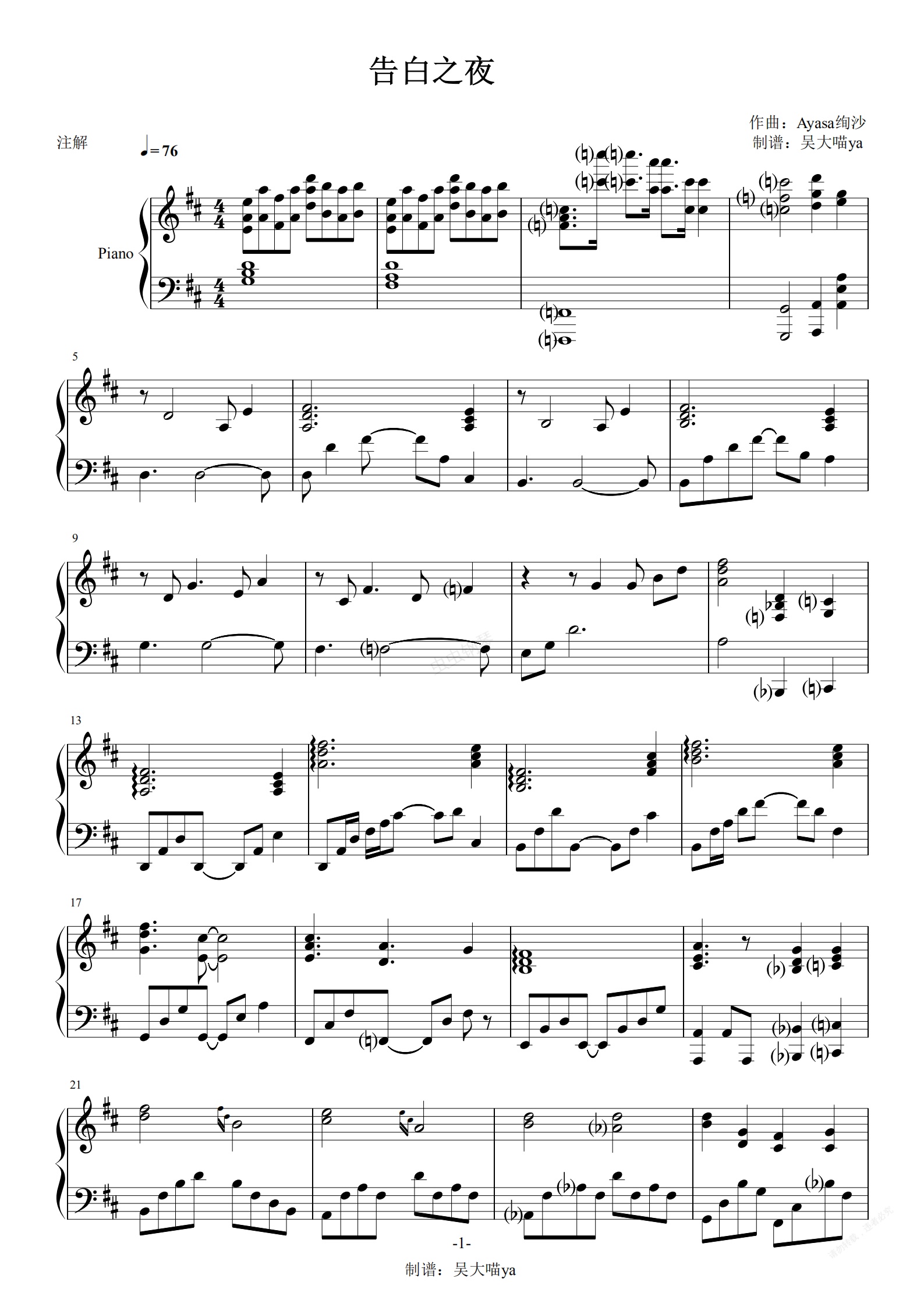 钢琴谱:《告白之夜》钢琴伴奏谱