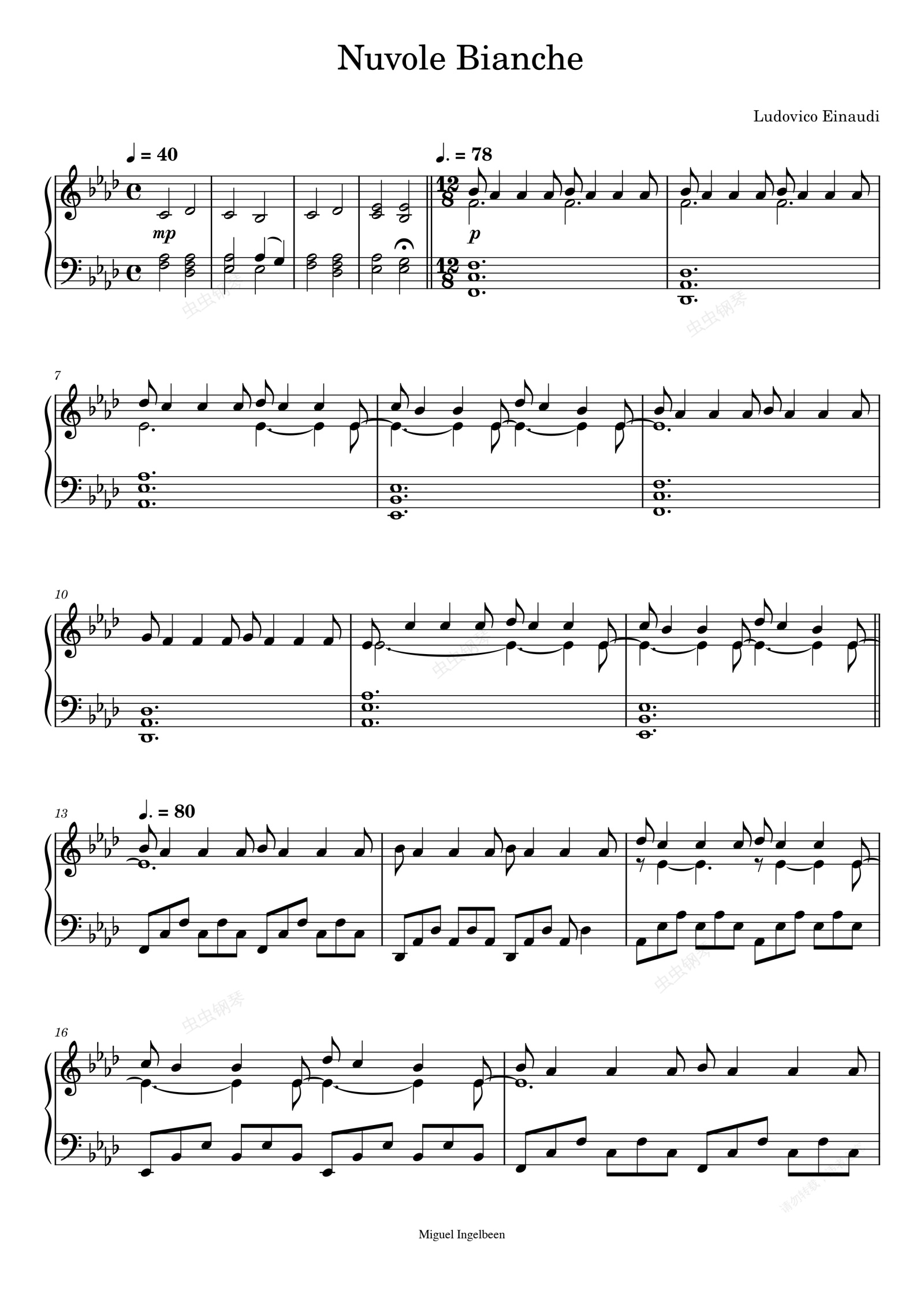 钢琴谱:白云 Nuvole Bianche - Ludovico Einaudi