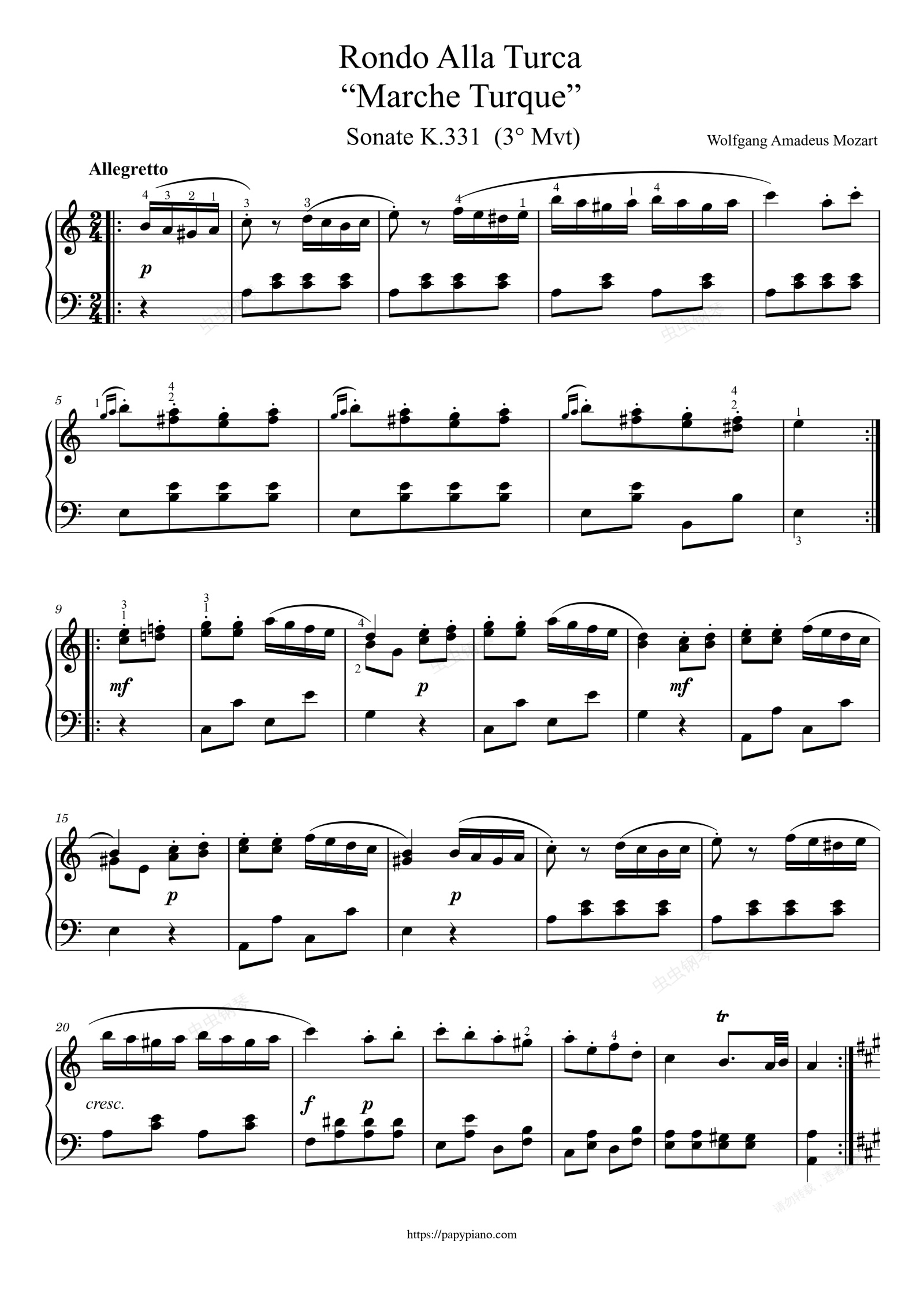 钢琴谱:土耳其进行曲 Mozart Marche Turque (Turkish March fingered)