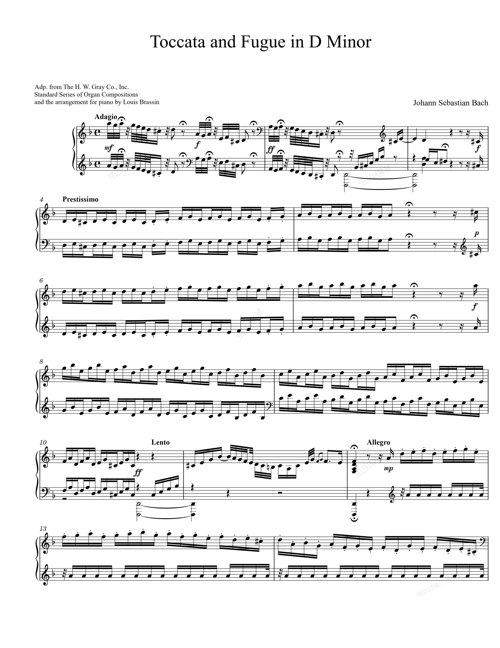 钢琴谱:D小调托卡塔与赋格,作品565 巴赫 Bach Toccata and Fugue in D Minor (Piano solo)