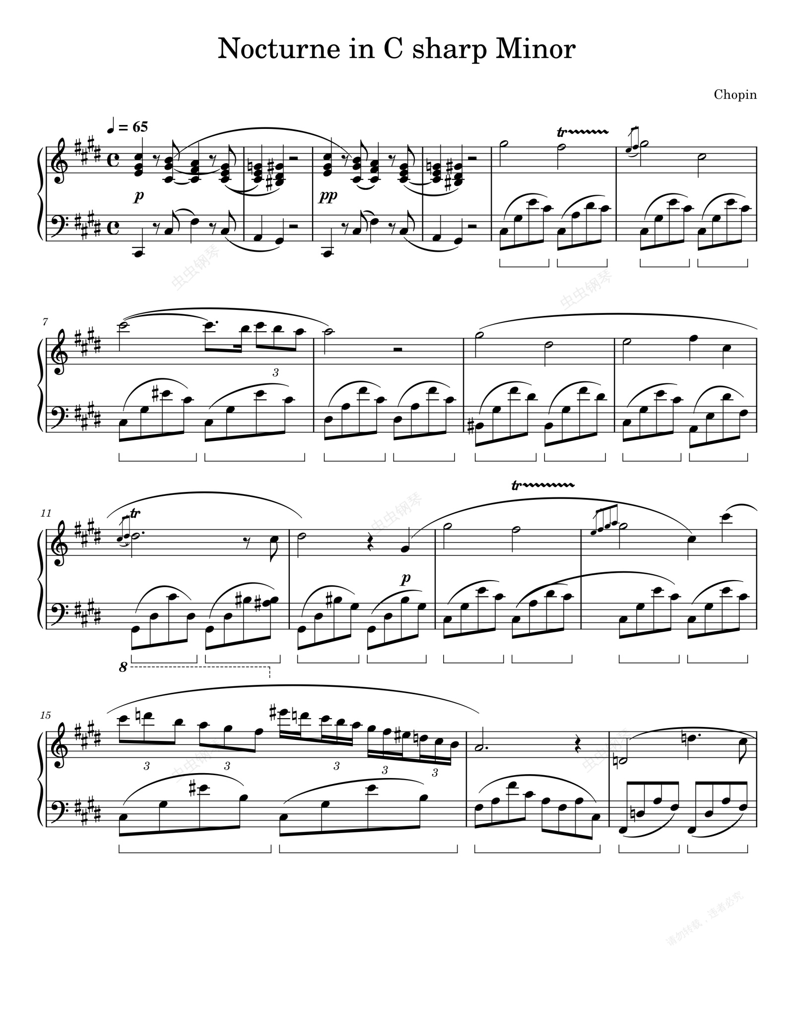钢琴谱:升c小调夜曲 肖邦 Nocturne in C sharp Minor