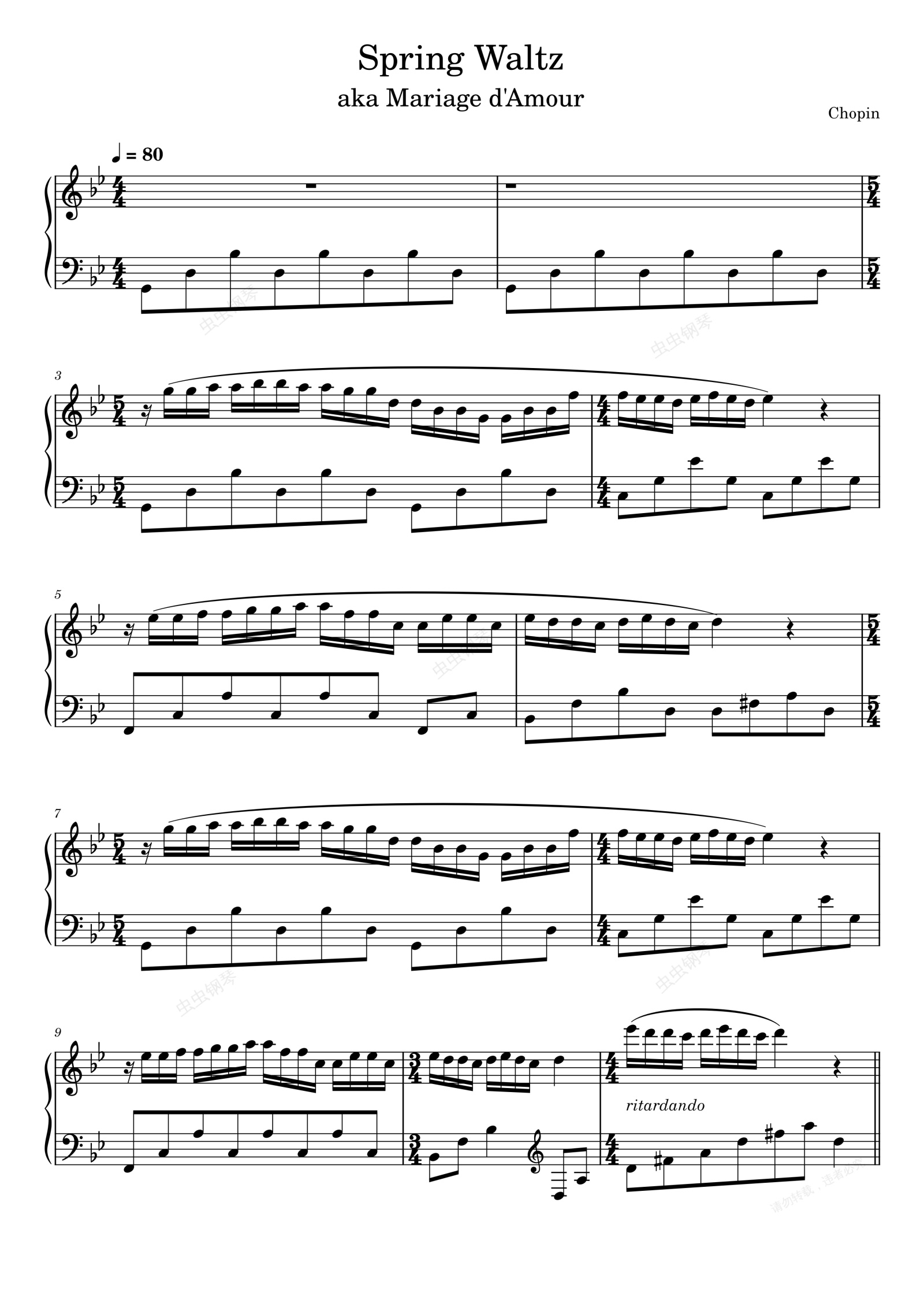 钢琴谱:梦中的婚礼 Spring Waltz (Mariage d'Amour) - Chopin