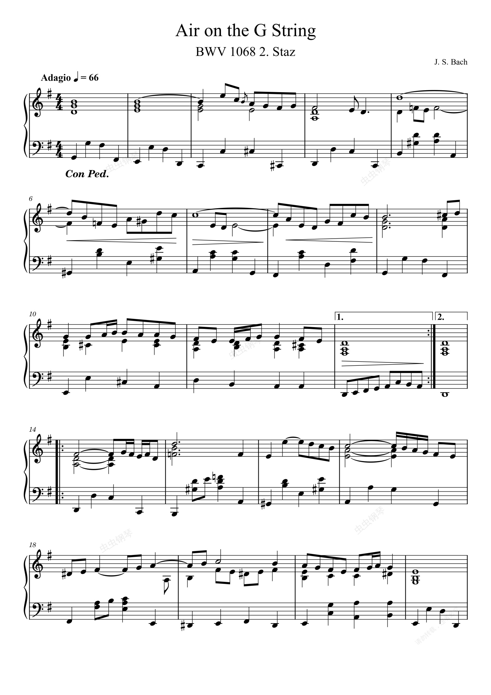 钢琴谱:G弦上的咏叹调 巴赫J. S. Bach - Air on the G String (Piano arrangement)