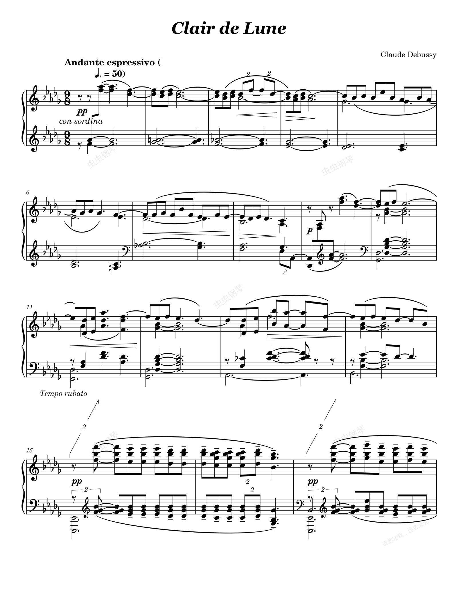 钢琴谱:德彪西 月光 Clair de lune - Claude Debussy