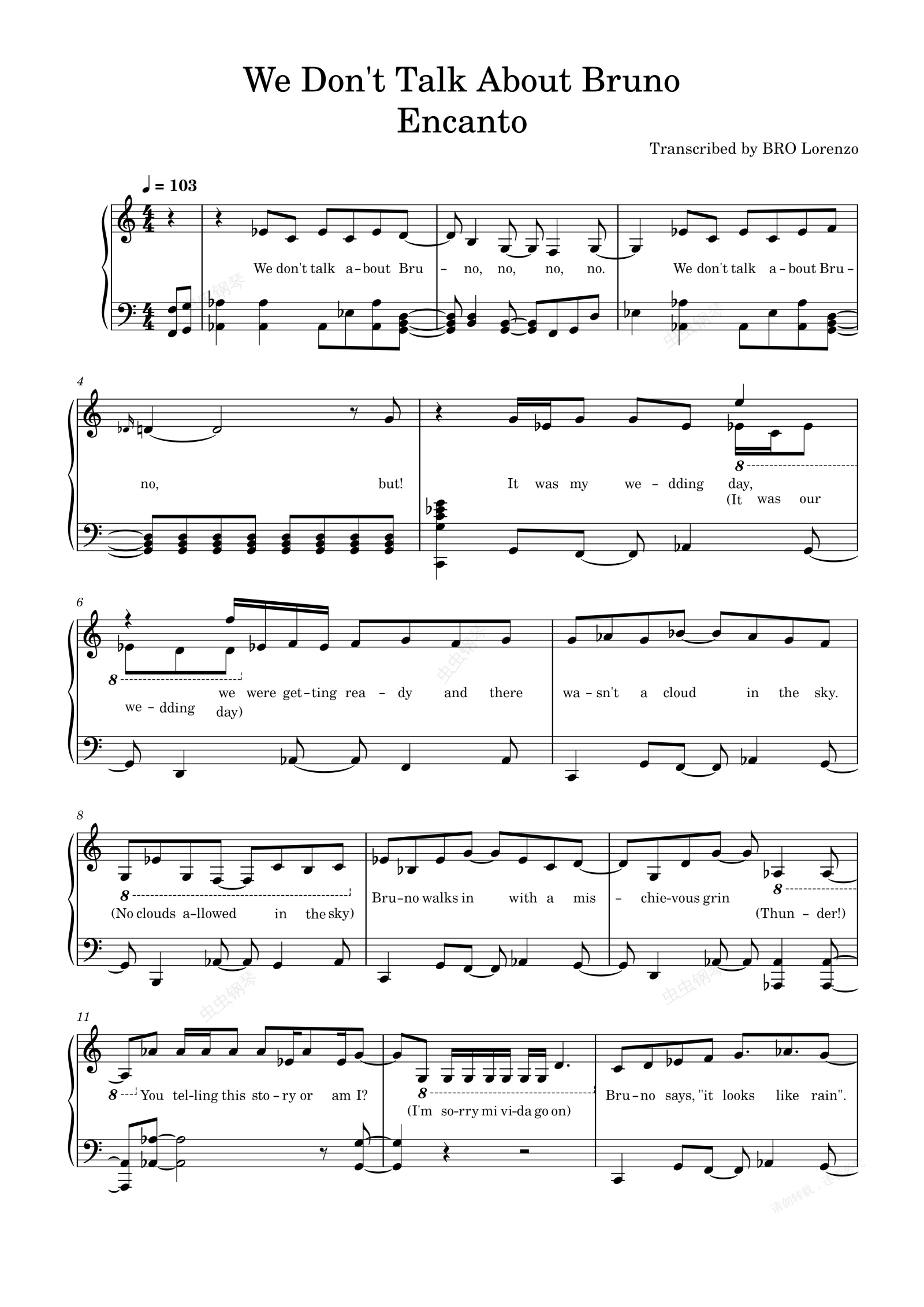 钢琴谱:魔法满屋 动画电影 We Don't Talk About Bruno – Lin-Manuel Miranda