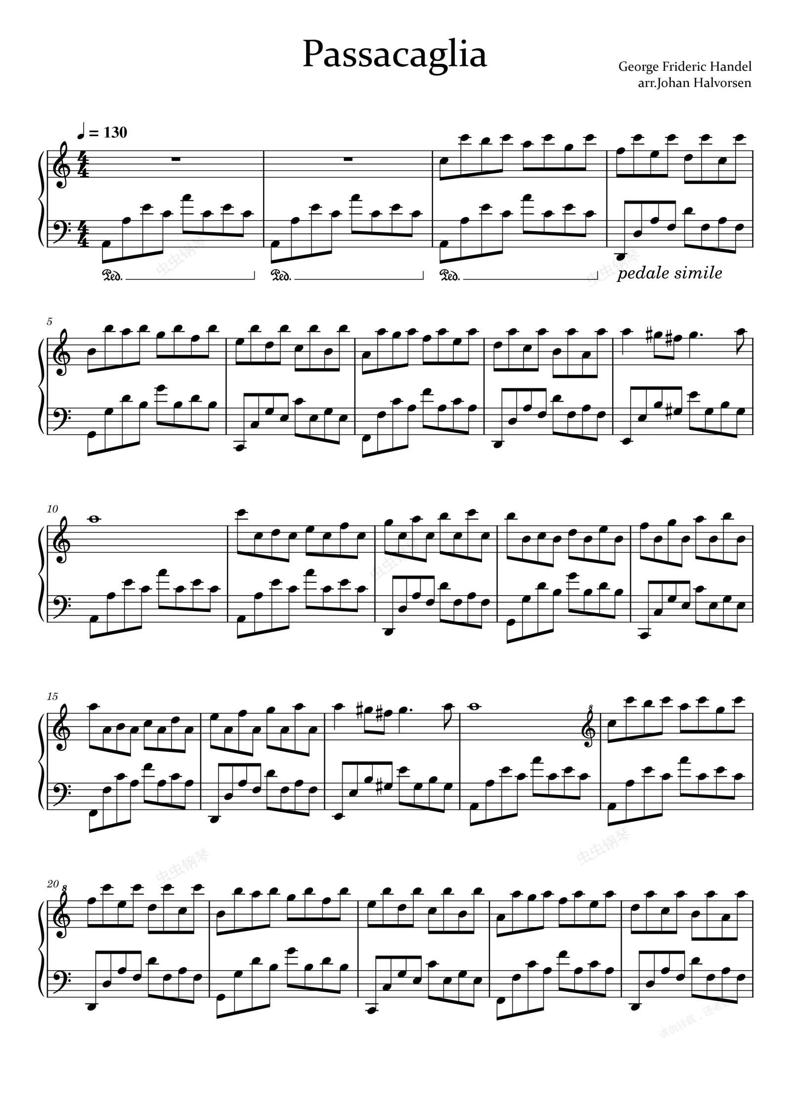 钢琴谱:亨德尔《帕萨卡利亚》Passacaglia – Handel/Halvorsen