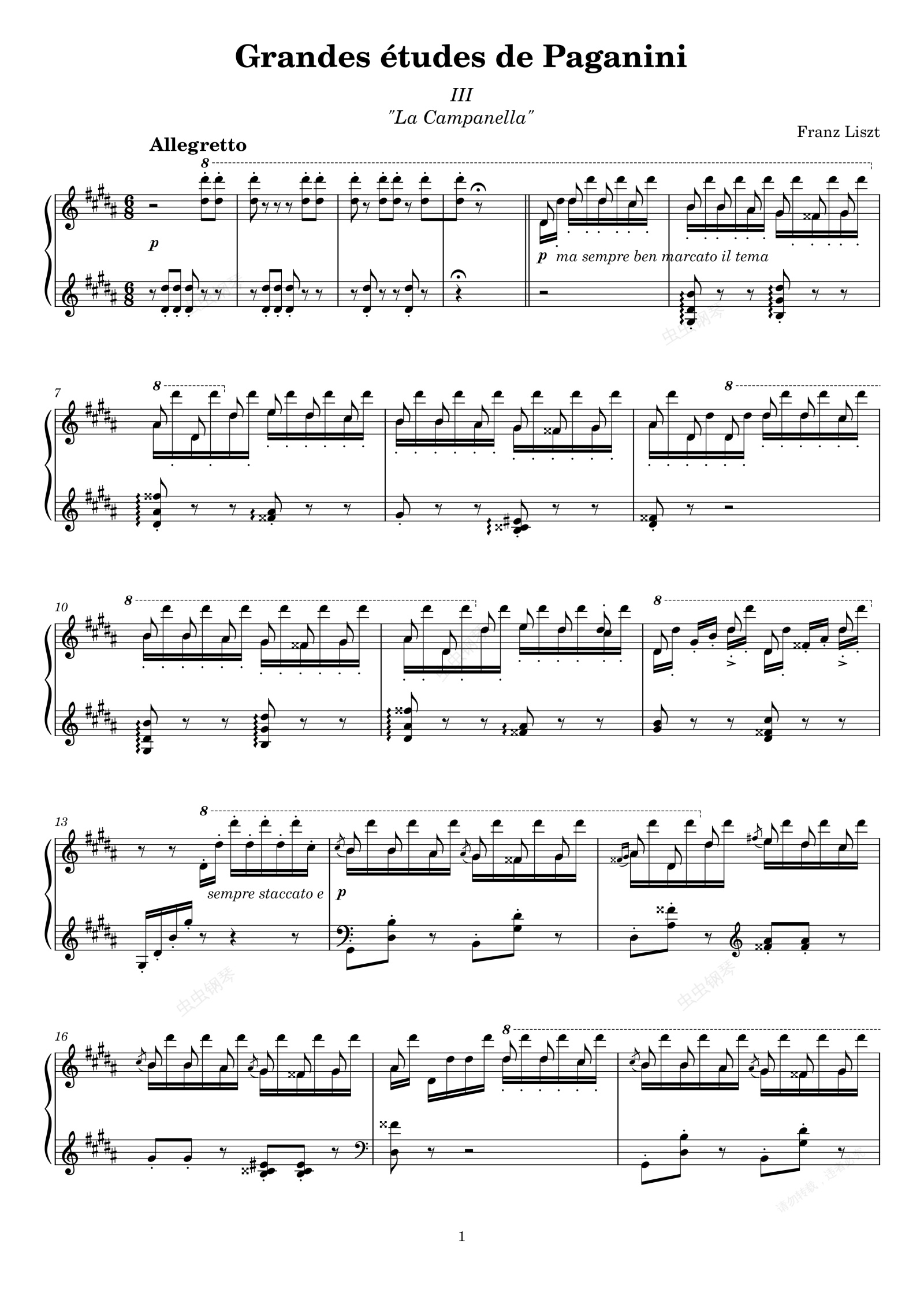 钢琴谱:李斯特 钟 La Campanella - Grandes Etudes de Paganini No. 3 - Franz Liszt