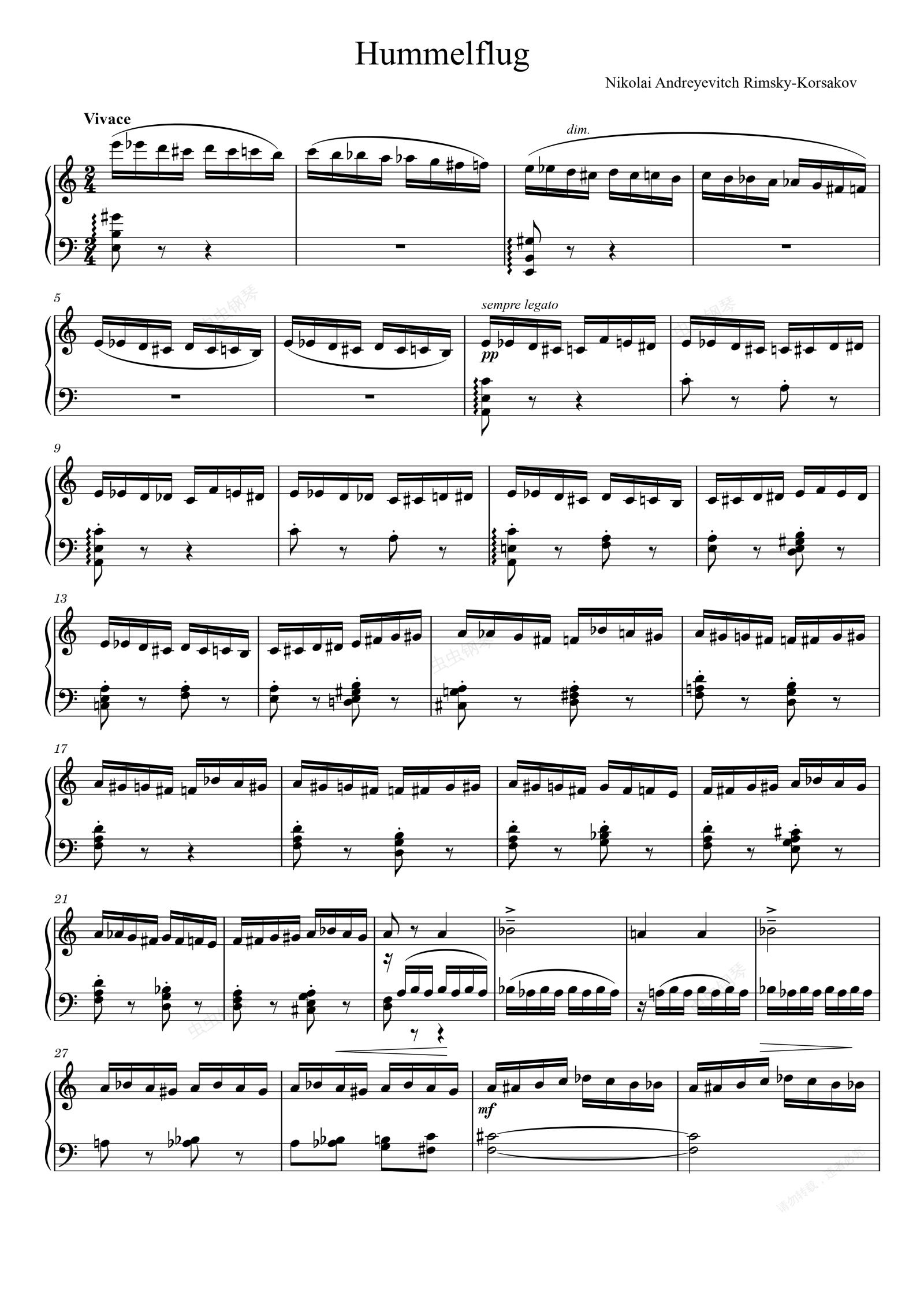 钢琴谱:野蜂飞舞 马克西姆 Flight of the Bumblebee