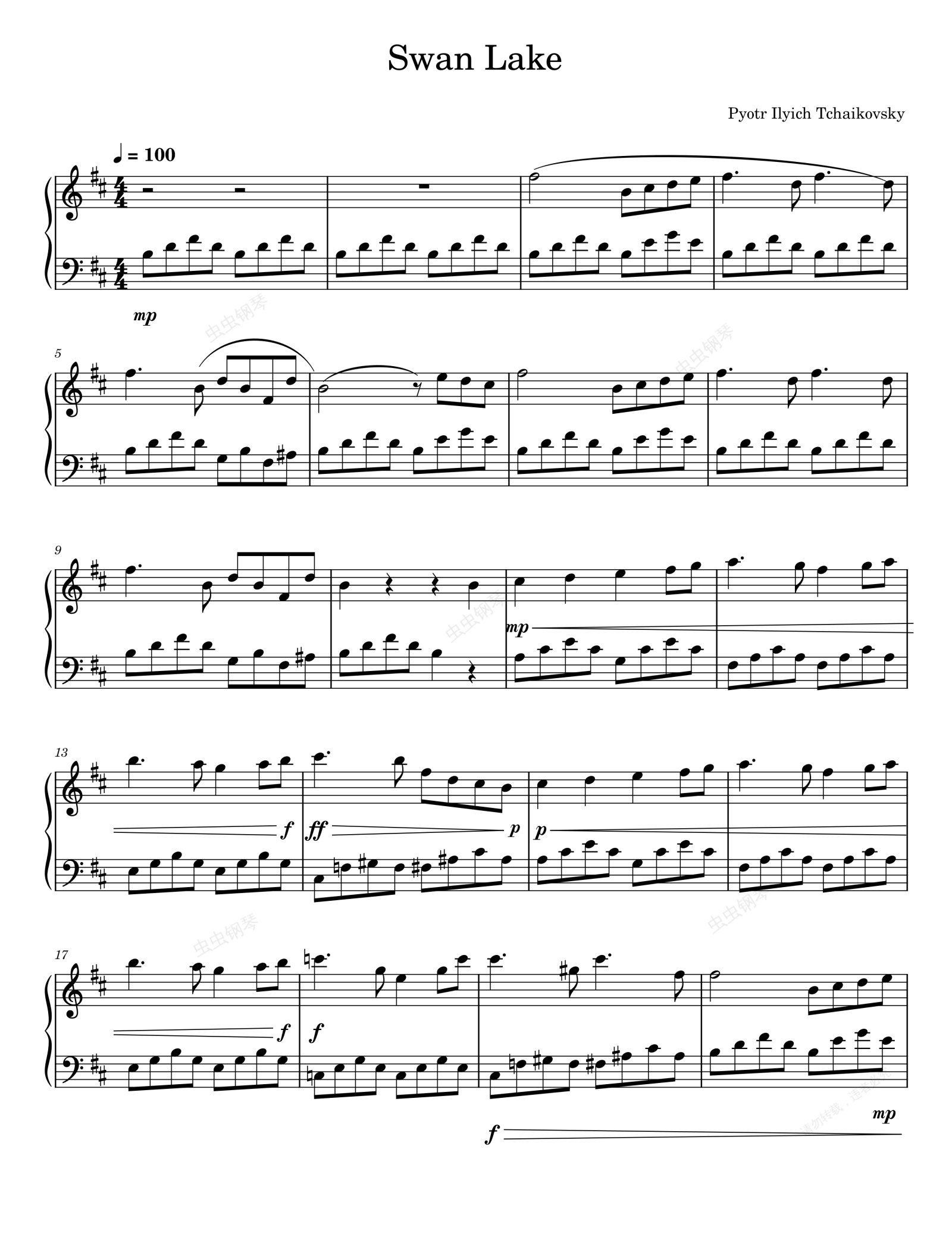 钢琴谱:天鹅湖 主题-柴科夫斯基  钢琴 Swan Lake Theme - Tchaikovsky