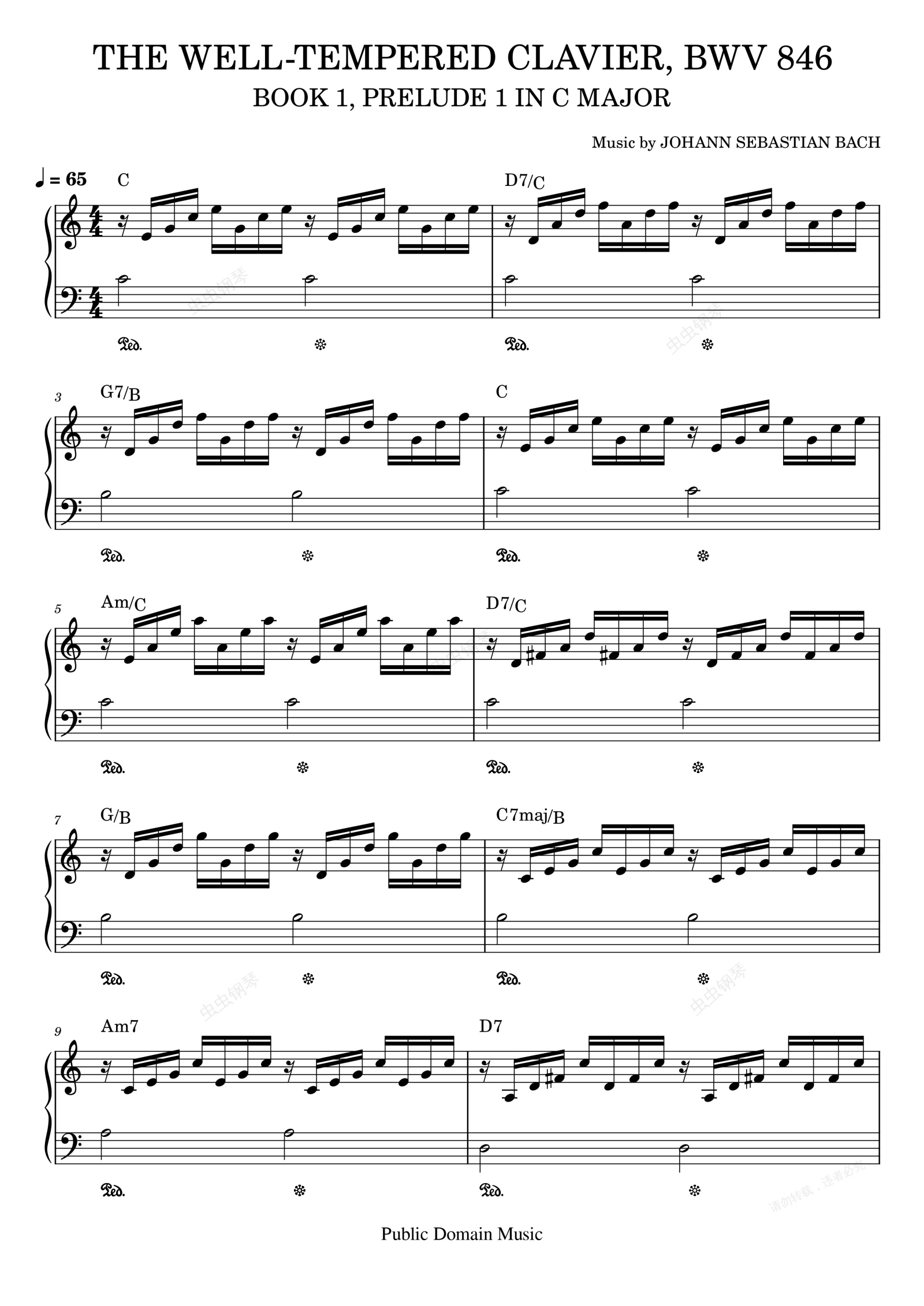 钢琴谱:C大调第一前奏曲 THE WELL-TEMPERED CLAVIER, Book 1, Prelude 1 in C Major by Johann Sebastian BACH
